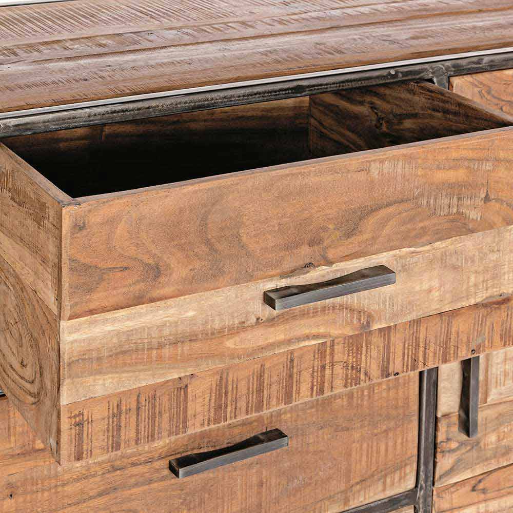 Industrial style sideboard made of acacia wood and steel.