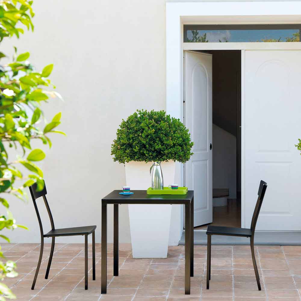 Square outdoor table in powder-coated galvanized iron, self-leveling and stackable, Made in Italy.