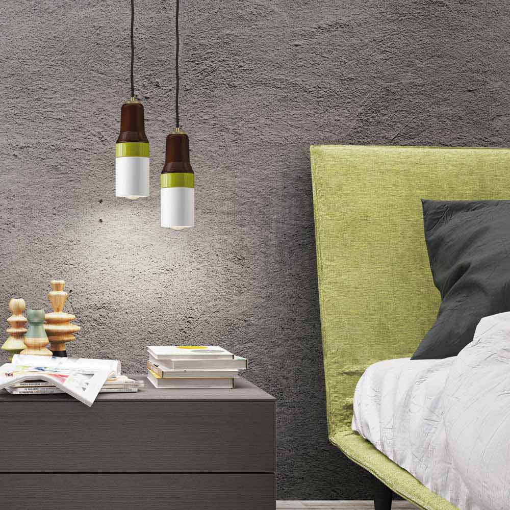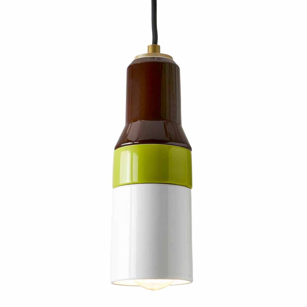 Modern pendant lamp in brass and ceramic Asia made in Italy The Asia suspension lamp is characterized by an ultramodern and fashionable design. Made of brown, green and white ceramic with black cable and brass cable clamp.