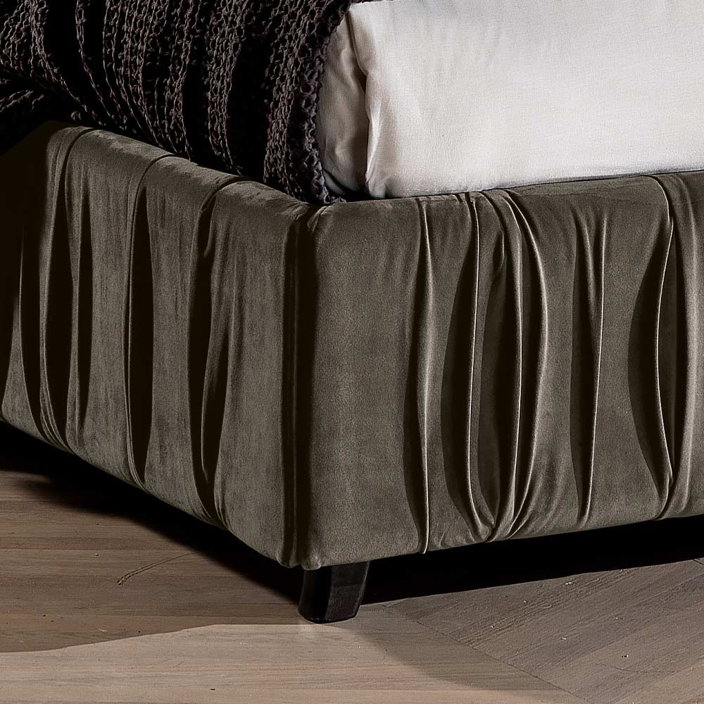In the volcano and elephant versions, the modern design complement shows the beauty of the fabric with folds that is also applied to the bed frame.