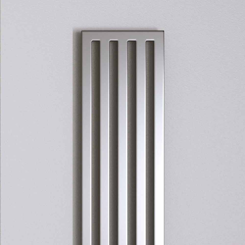 Chrome steel radiator, vertical in the hydraulic version. Mix of materials between heating structure and covering slabs in a perfect balance between aesthetics, functionality, care and refinement of detail. With News Dress you dress the environment you live in.