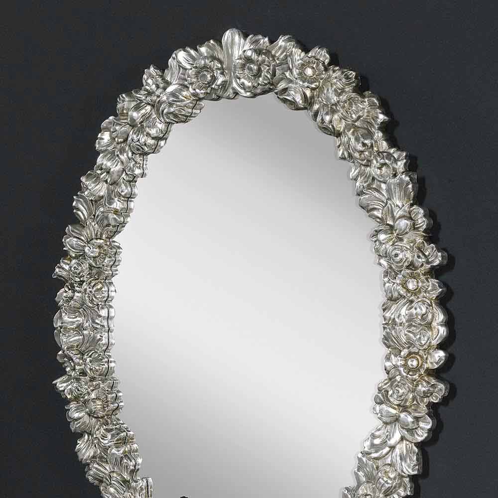 This mirror is a true triumph of decorative art , a furnishing element that transforms any wall into a gallery of style. The frame is a riot of expertly sculpted flowers, each finished in a shade that adds a modern touch to the classic floral motif.