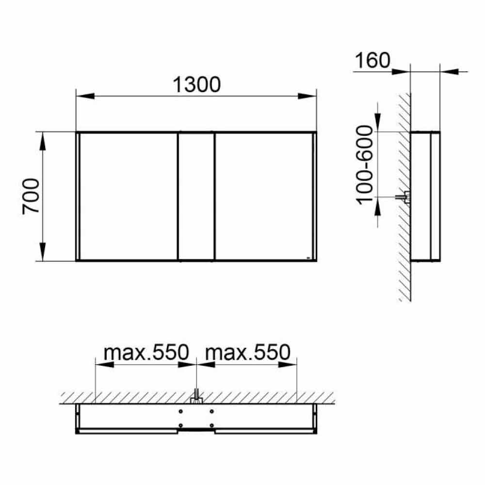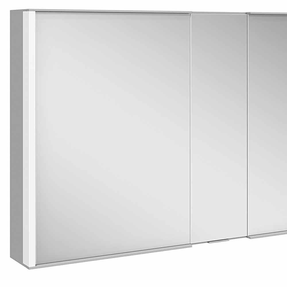 LED lighting that is easily adjustable and dimmable through the electronic sensor switch, thus creating unique atmospheres within the room. Once open, the 2 doors rotate around the light bands thus allowing optimal lighting to be obtained both when closed and when open.