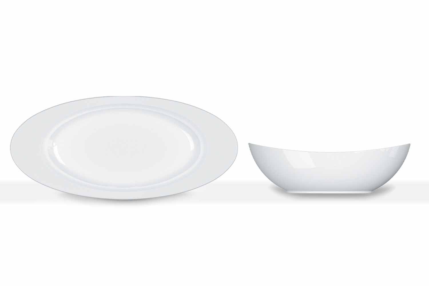 Serving set of modern oval design in white porcelain, 2 pieces.