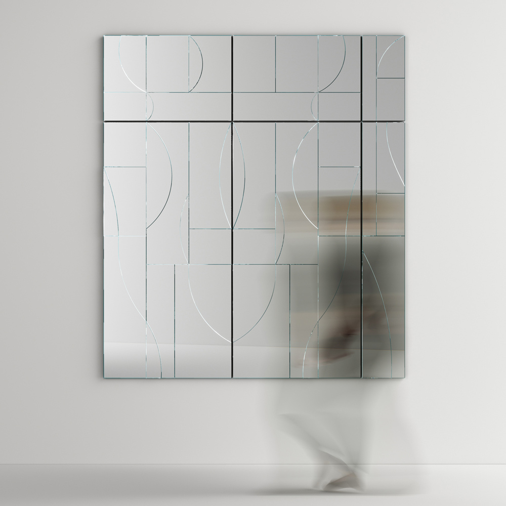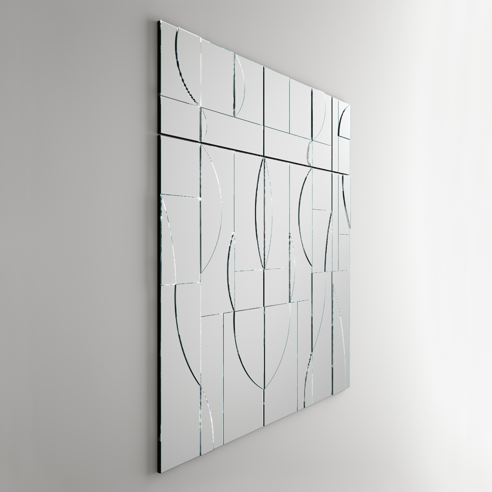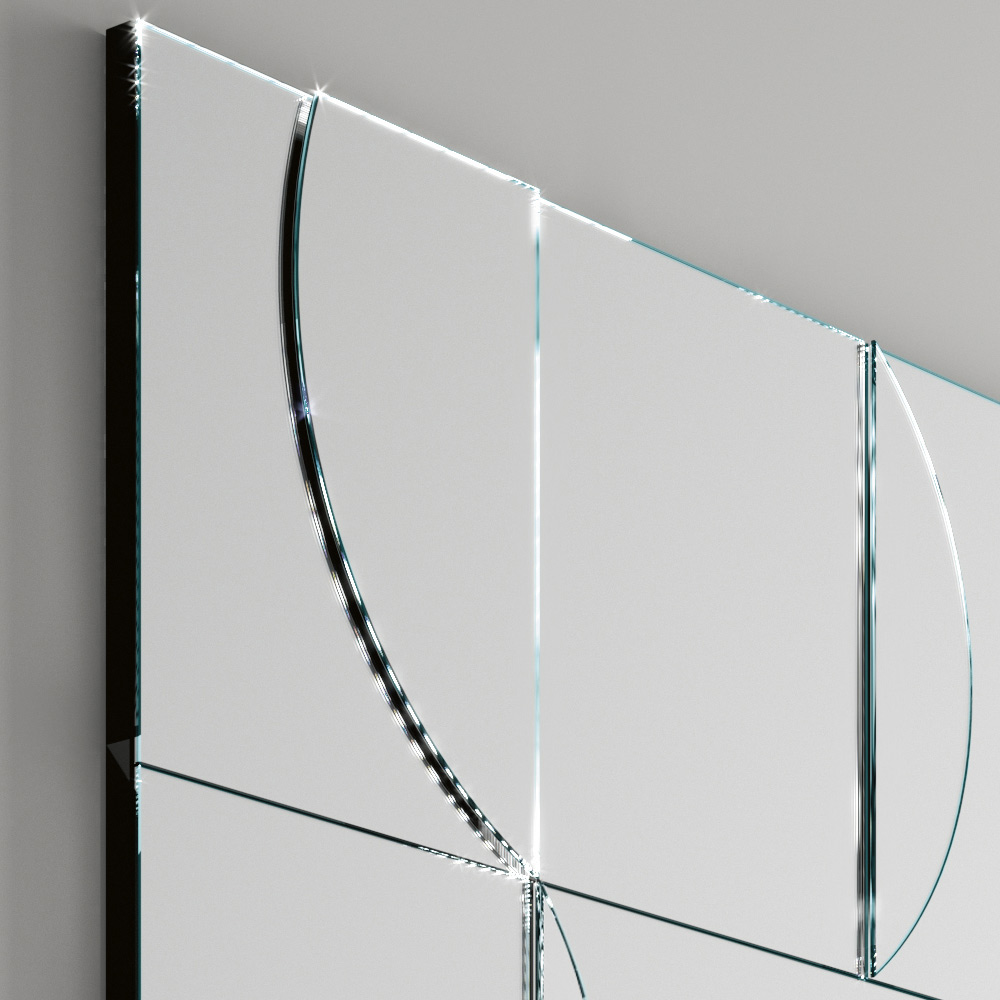 Wall mirror composed of 6 elements modular made in Italy with wooden structure. An impressive and exclusive furnishing idea, ideal for creating different compositions thanks to the particular elegant and refined texture obtained by overlapping mirrors of different shapes and sizes. Thanks to its graphic design, it allows you to create real works of art that evolve into different furnishing solutions thanks to its extreme modularity , a feature that allows you to give free rein to your imagination, thus creating unique mirrors according to your tastes. and their needs.