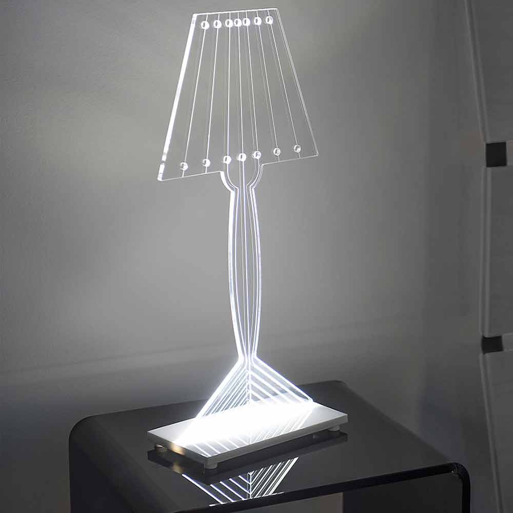 Elegant table/bedside moulded LED lamp, made in plexiglass PMMA 100% from virgin polymer.