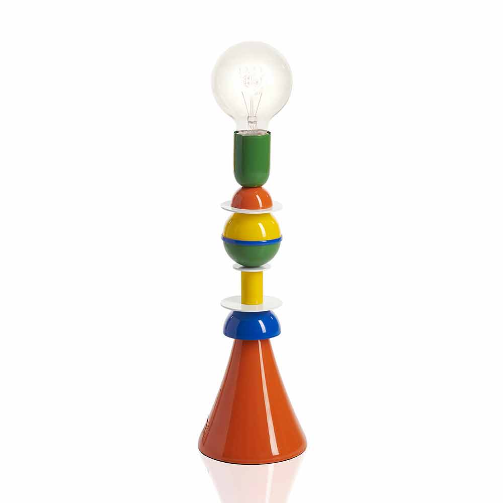 Slide Otello multicolored aluminum table lamp made in Italy Otello is a perfect table lamp for indoor furnishings where you can release vitality and energy. With geometric shapes and a very particular made in Italy design, this lamp evenly illuminates your room, becoming the protagonist thanks to the bright colors that compose it.