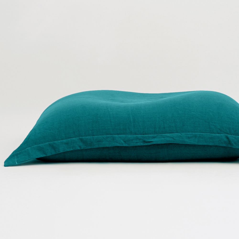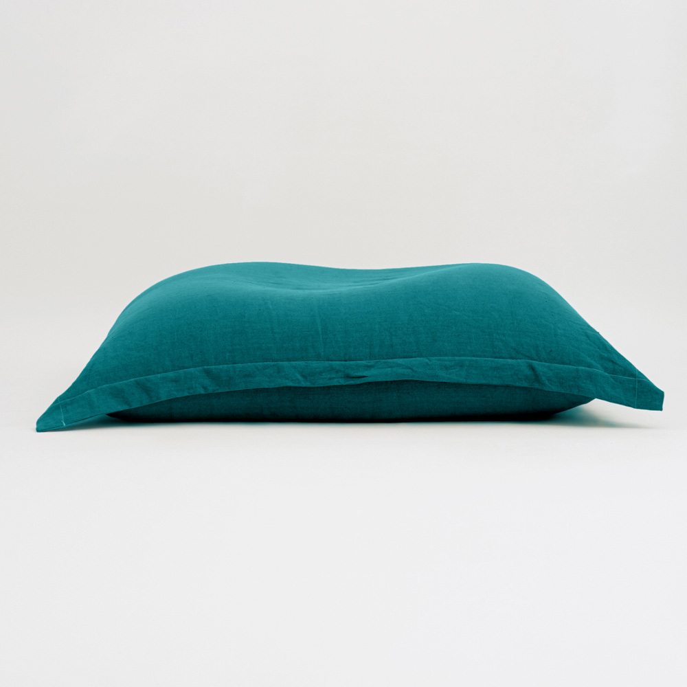 Garden cushion made of teal-colored fabric.