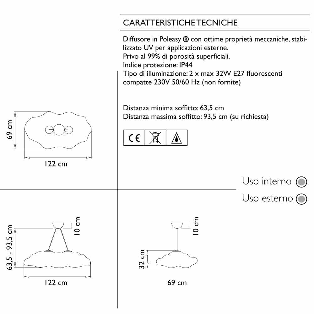 Nèfos suspension lamps give deep emotions to the pleasure of furnishing. Like dreamy clouds with a pleasant diffused brightness, they know how to fit gracefully into any setting, bringing with them a light, very pleasant breath of nature. Made in neutral and blue colors, Nèfos lamps are equipped with IP protection against atmospheric agents, a very rare feature in pendant lamps.