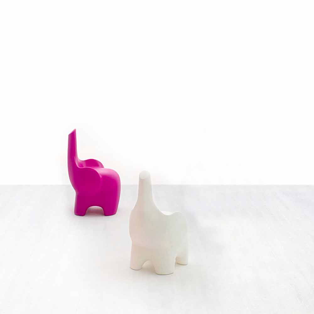The idea is to create a chair for children which is also a game: an animal, the elephant, capable of creating empathy, identification of the child in his game. Transactional object, it recalls tenderness, strength, courage and beauty in the little one. The soft and sweet shape makes the object a mascot. The trunk of Tino is turned upwards becoming a backrest and taking up the auspicious symbolism of the elephant.