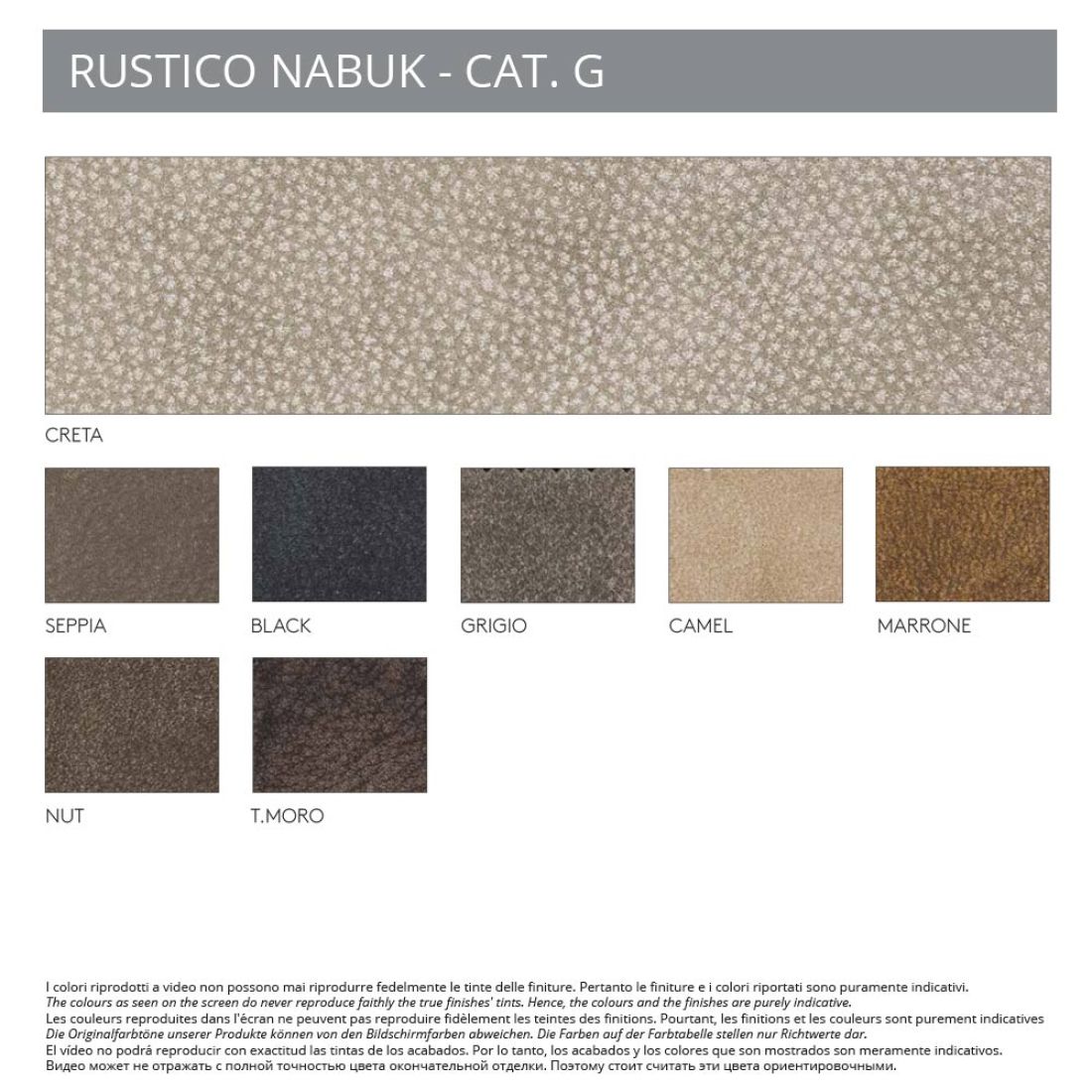 The leather Nabuk upholstery is available in different colors. View the color chart and write in the appopriate box the code of the desired color.
