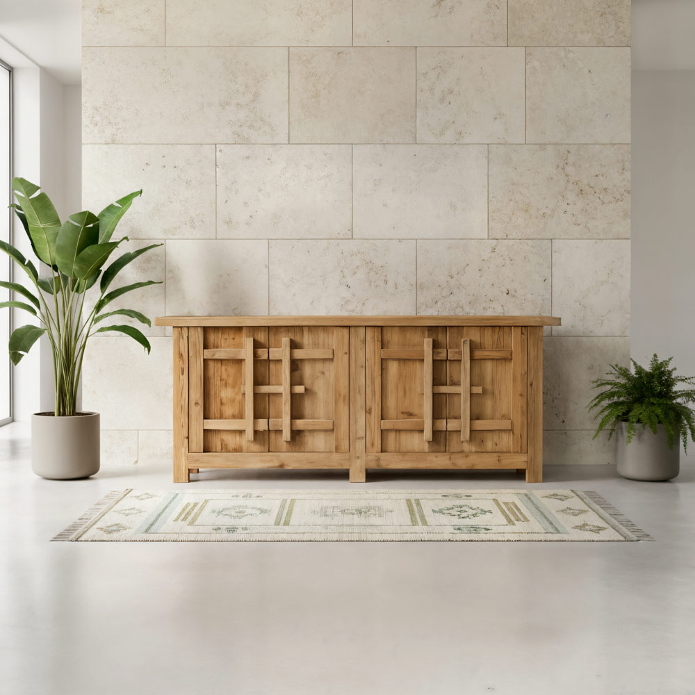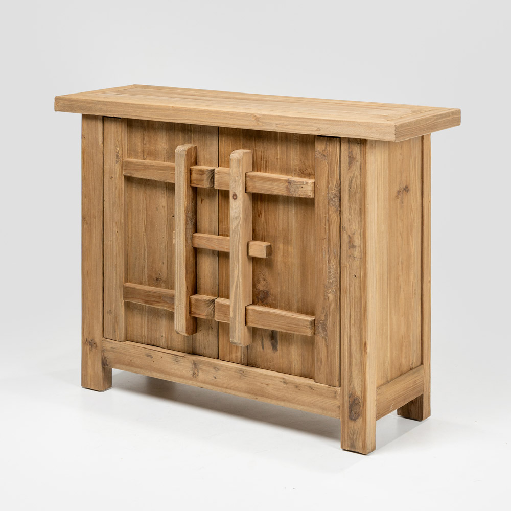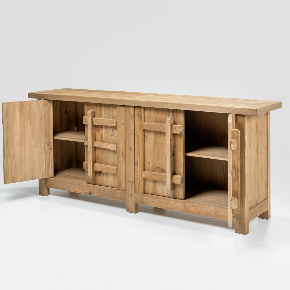 This aged natural pine sideboard is a piece with an authentic and textured character, ideal for rustic, country, or natural-style spaces. The aged finish highlights the wood grain and its imperfections, making each piece unique and full of personality.