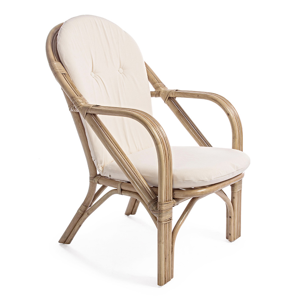Natural Rattan Garden Armchair with Removable Cushion - Maurizia
