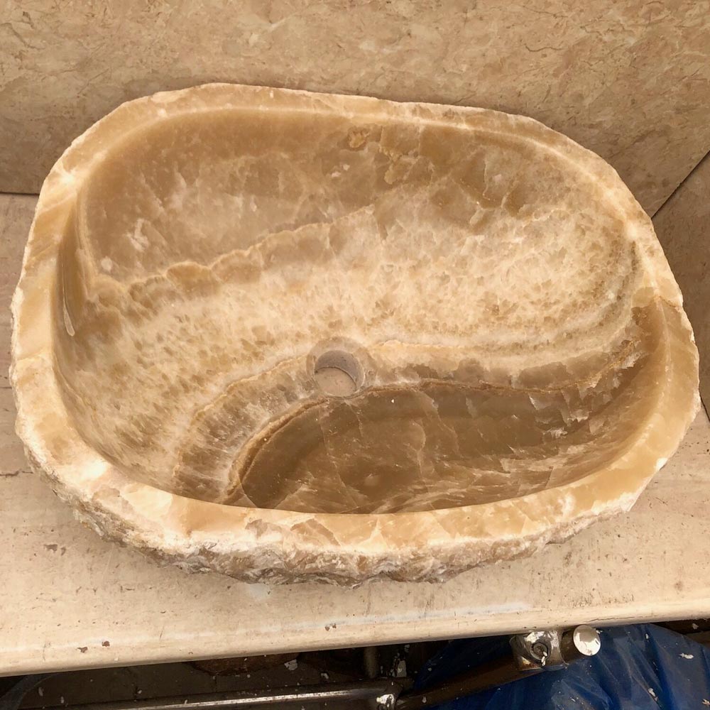 Countertop washbasin in natural stone, handmade.