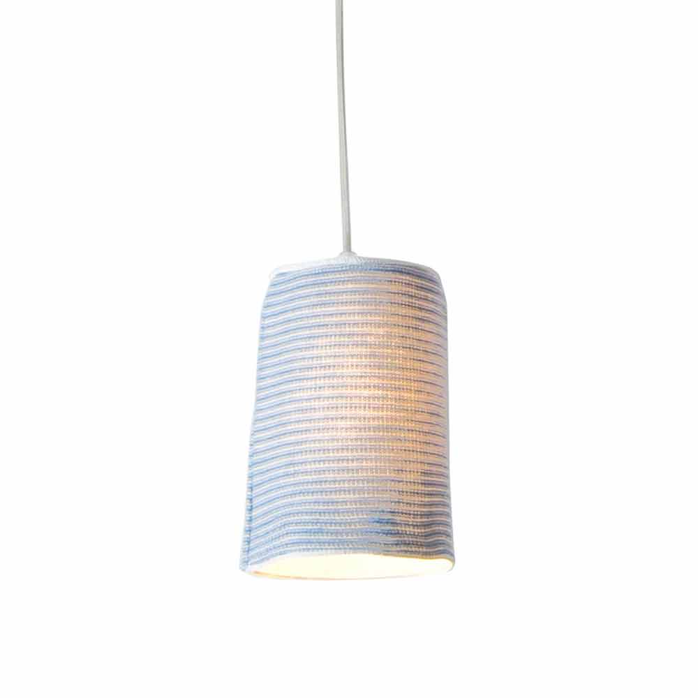 Suspended lamp in nebulite and wool In.es.artdesign Paint Stripe Suspension lamp outlined by a nebulite structure (an innovative material composed of resin and fiber) covered with a striped wool yarn in the colors: - yellow; - red; - blue; - Violet.