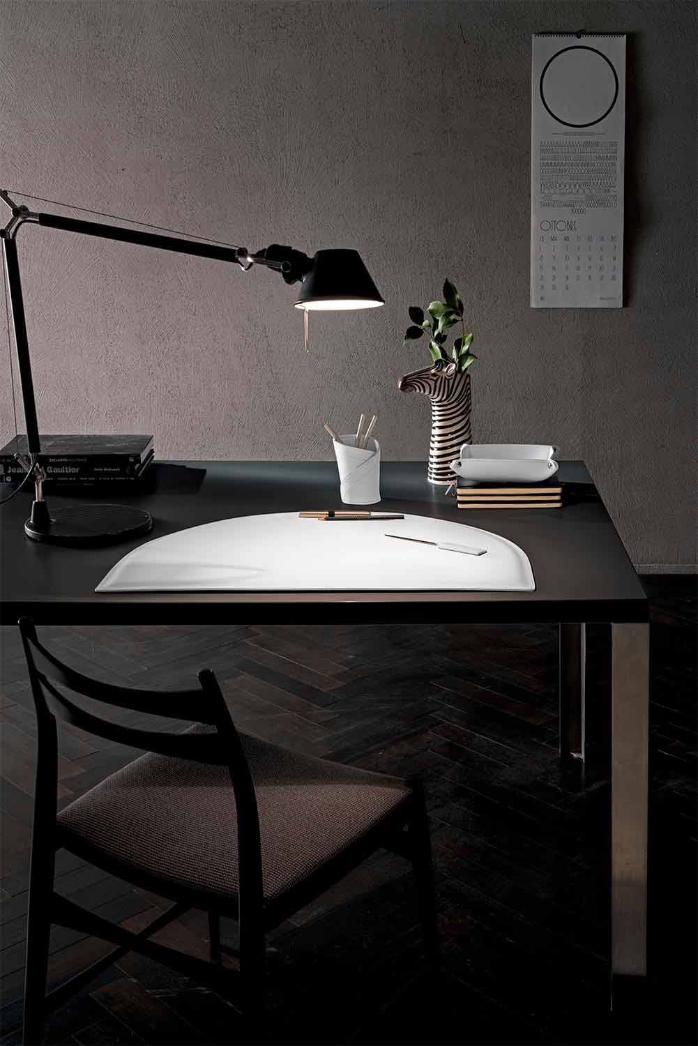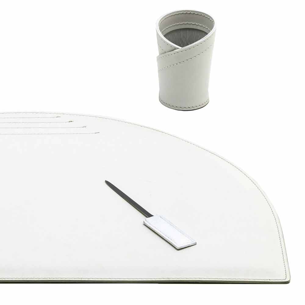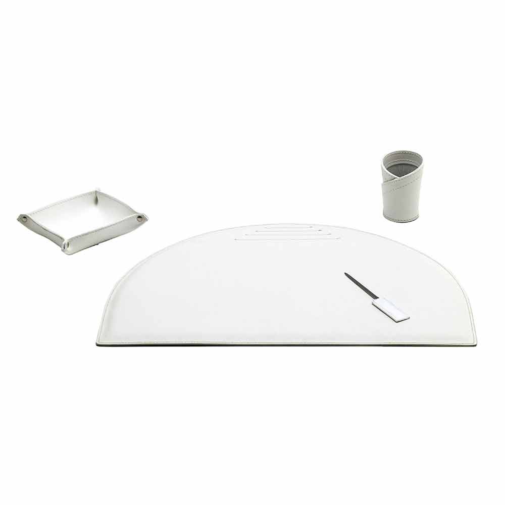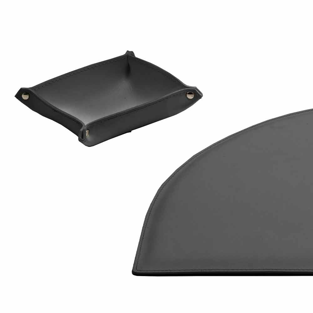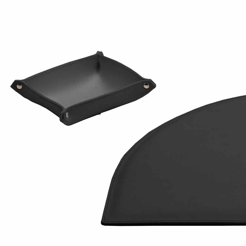 The set of Medea office accessories includes functional but at the same time decorative complements. They are produced in regenerated leather in Italy by skilled artisans specialized in the processing of this material.