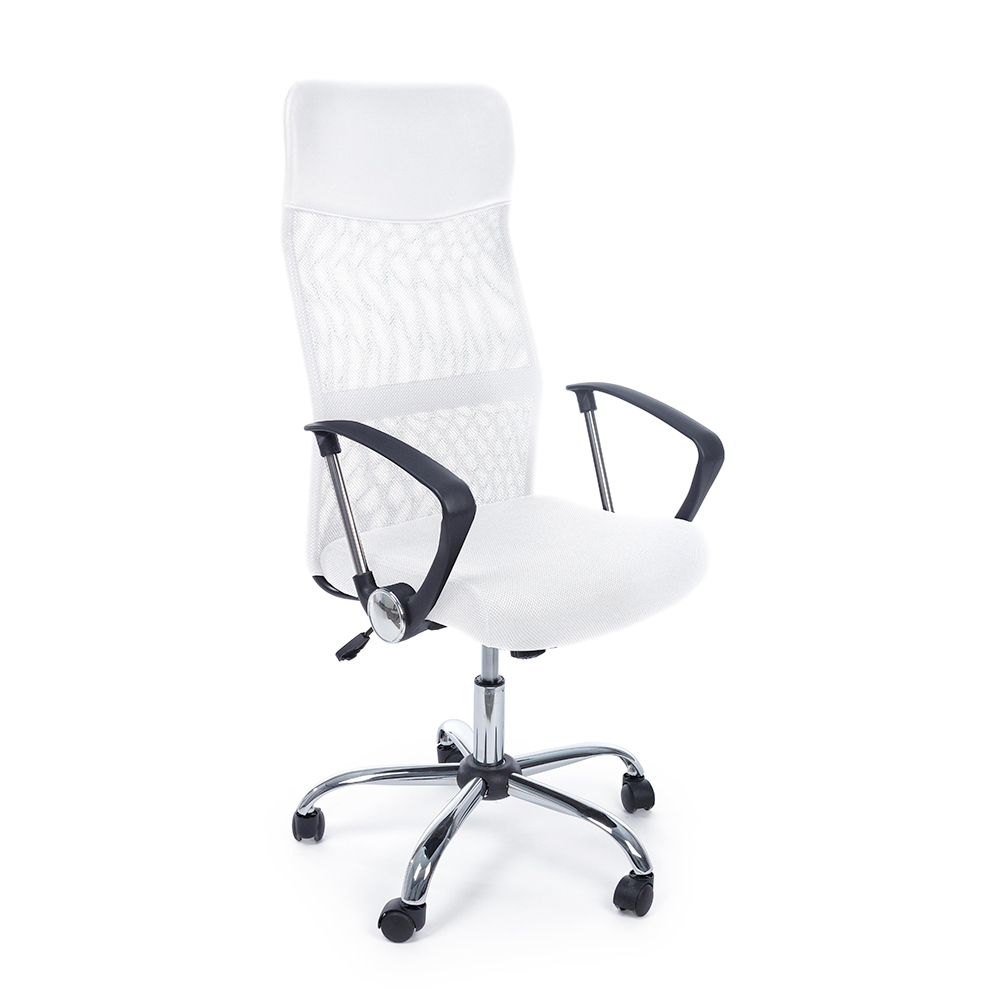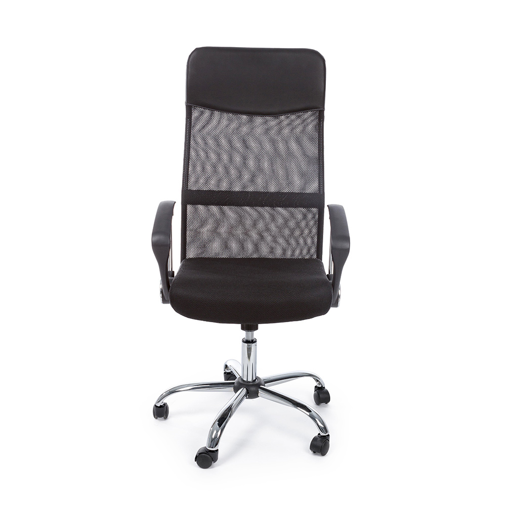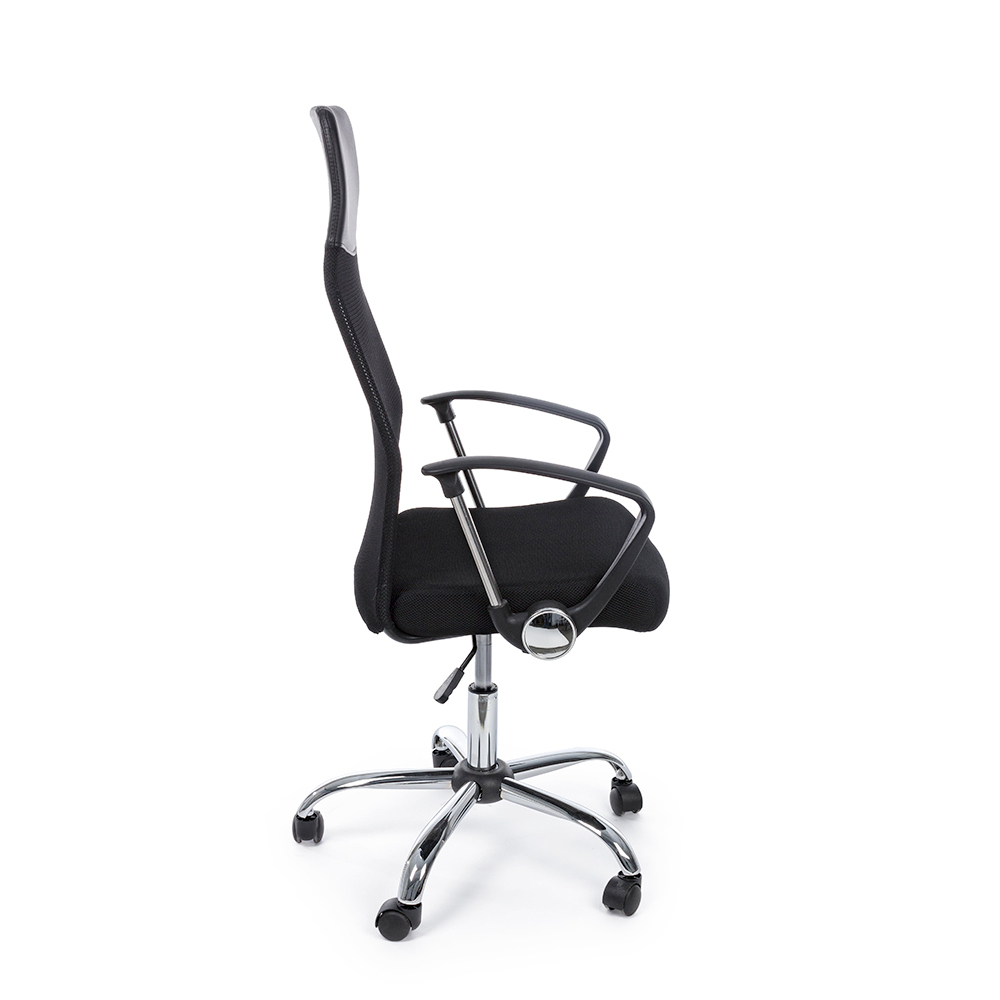 This office armchair is made with a solid base in chromed steel with a diameter of 60 cm and nylon wheels . The height-adjustable seat is padded andcoated in100% polyester fabric and mesh fabric with armrests in plastic (polypropylene) and chromed steel. Design to assemble.