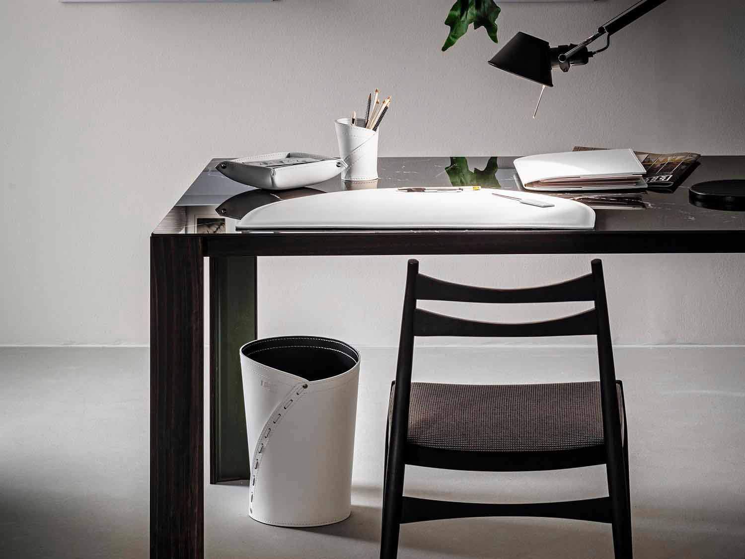 The Meduna office composition is a functional but at the same time decorative piece of furniture . Made of regenerated leather in Italy by skilled artisans specialized in leather processing. Meduna includes:
