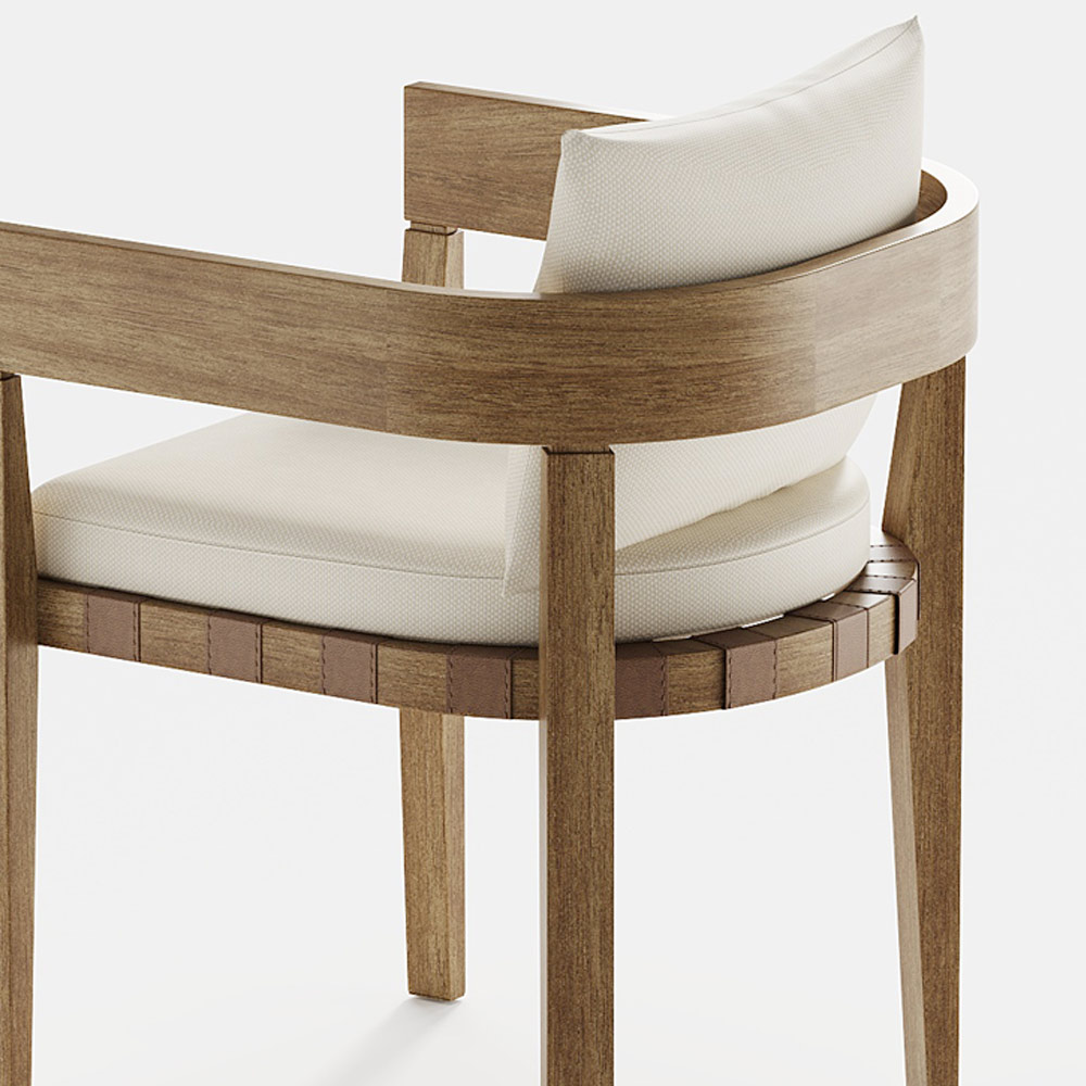 Outdoor armchair in teak wood with seat and back in padded cushion Made in Italy