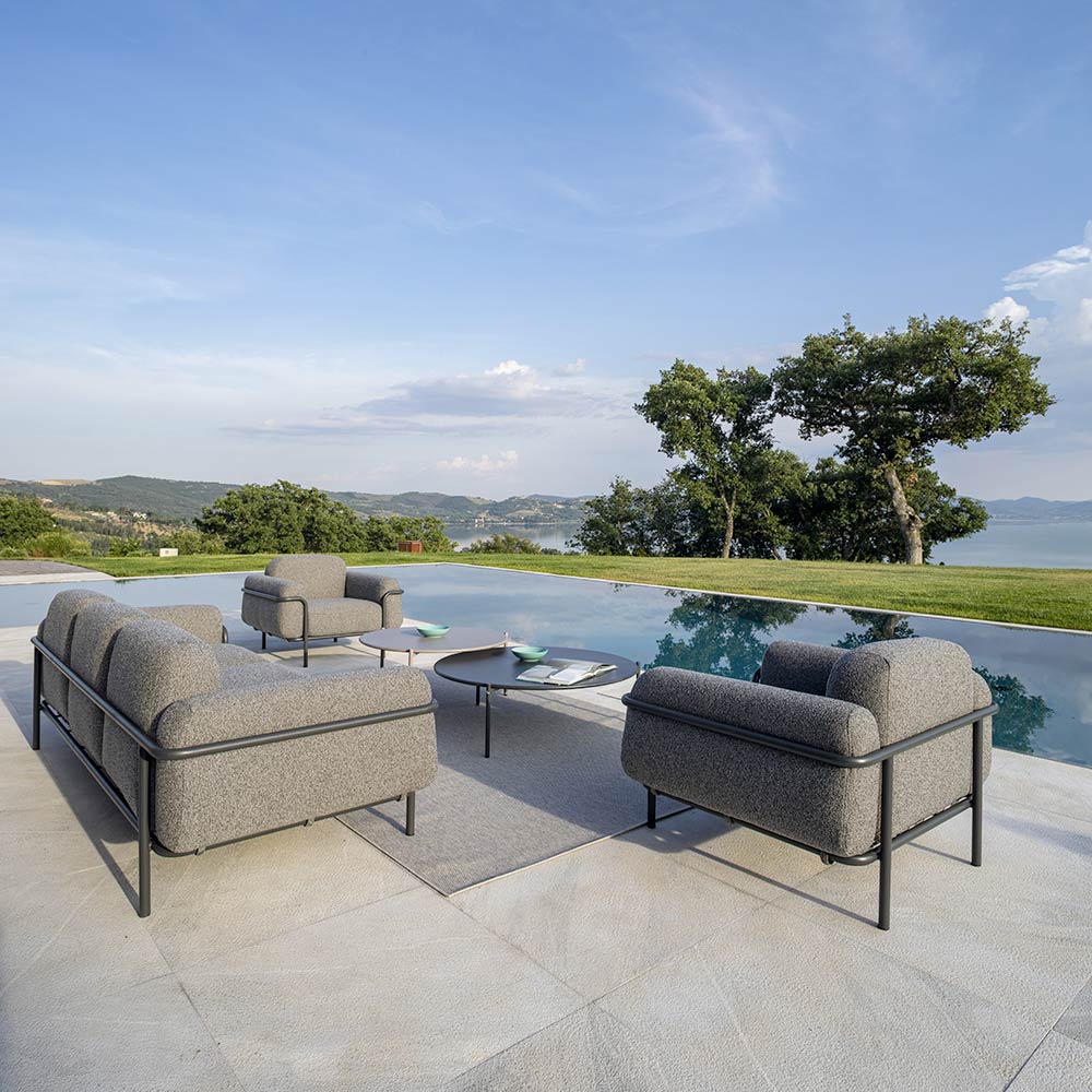 The design with solid lines and rounded corners makes the product enveloping and welcoming like a hug. The large seats and soft profiles design spaces with a contemporary charm . The armchair is perfect for those who aim for a sober and elegant furnishing style capable of giving modernity and freshness to any context.