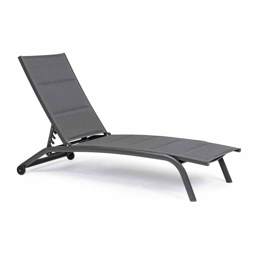 Outdoor Chaise Longue in Textilene and Aluminum with Wheels, 4 Pieces - Babilonia