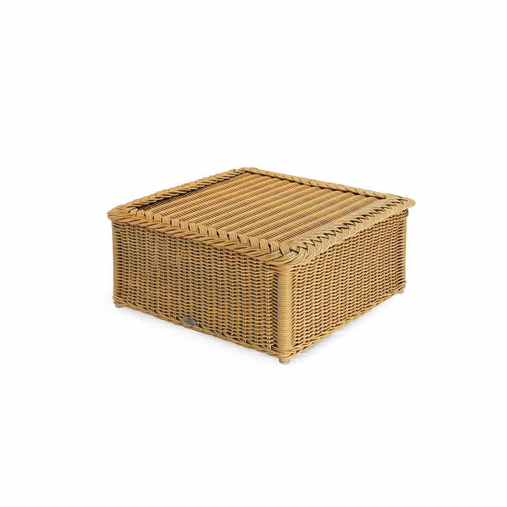 Aluminium frame covered with round handwoven polyethylene (5 mm), available in the colours white or honey.