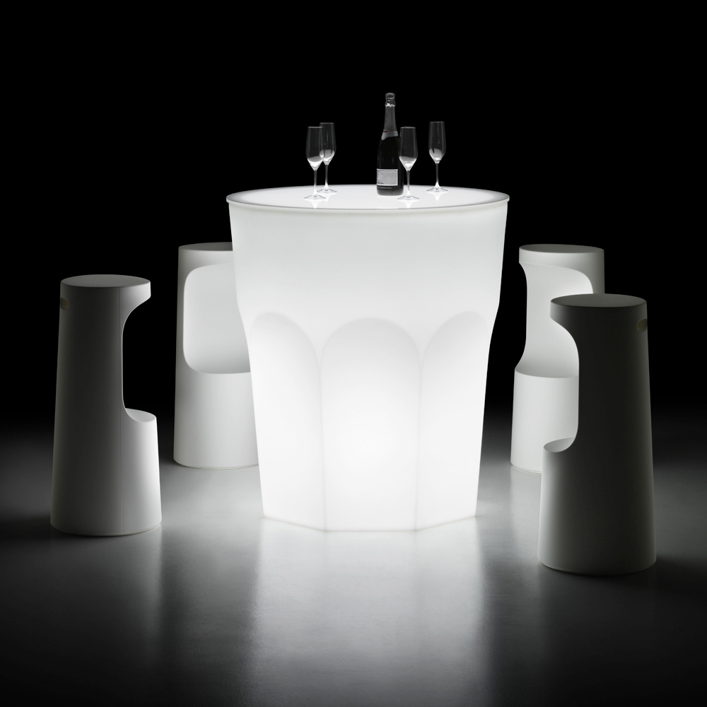 Design outdoor light table in polyethylene with LED light, Made in Italy.
