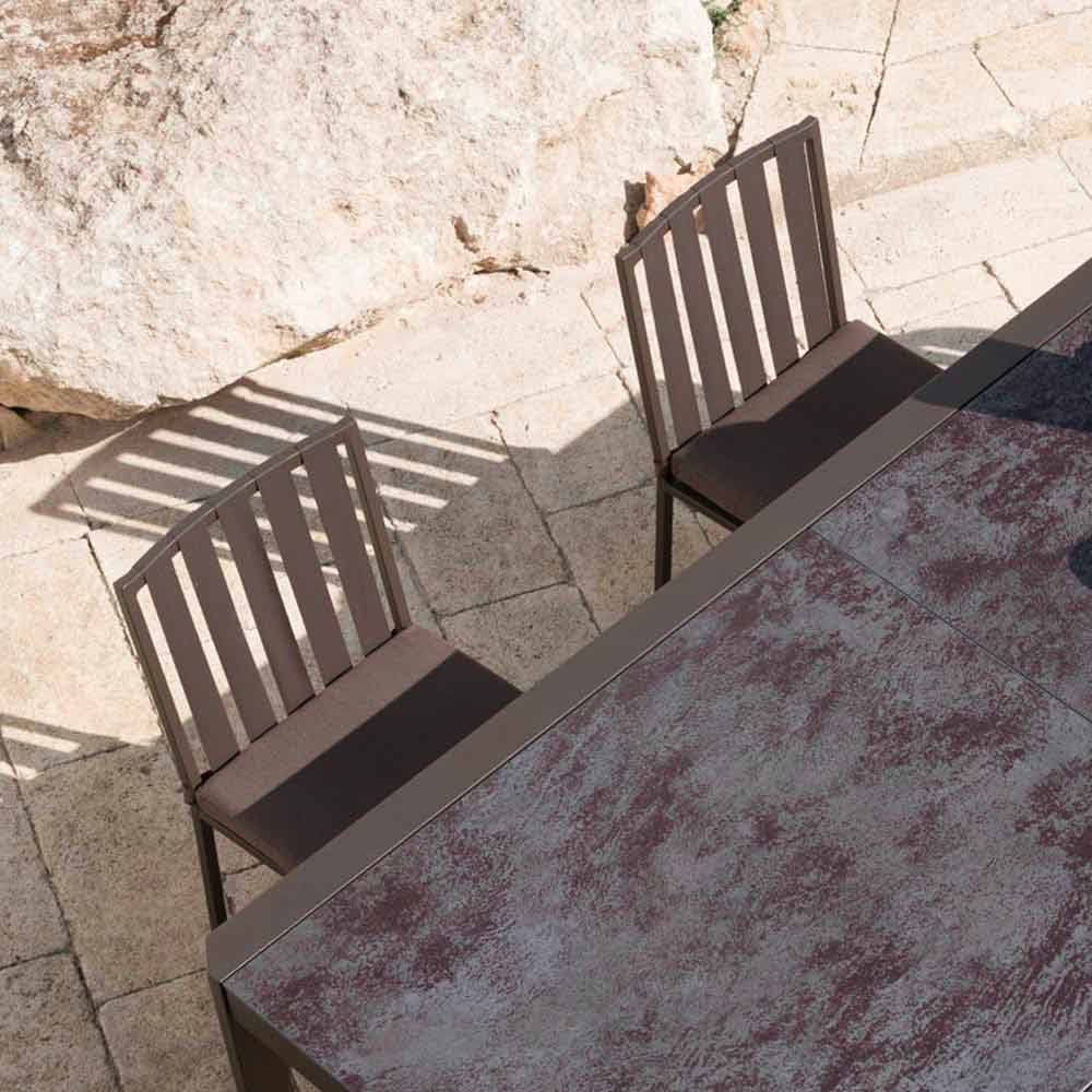 The peculiar, elegant and refined design of this outdoor chair is characterized by the alternation of empty and full spaces that creates a light and contemporary visual appearance.