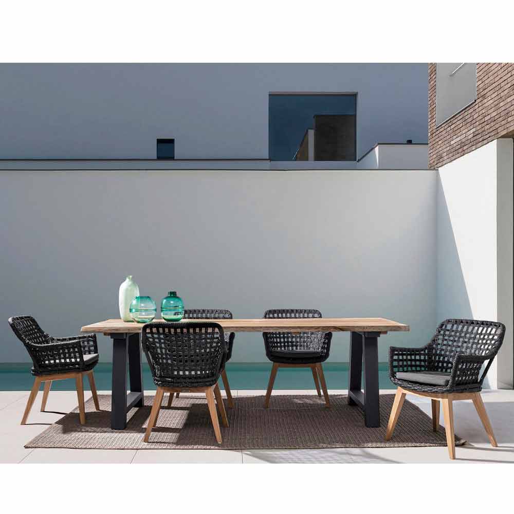 Teak wood top (original log sections) - svlk (certified wood from sustainable forests). natural finish, powder coated aluminum legs (polyester). Galvanized steel screws. Adjustable feet.