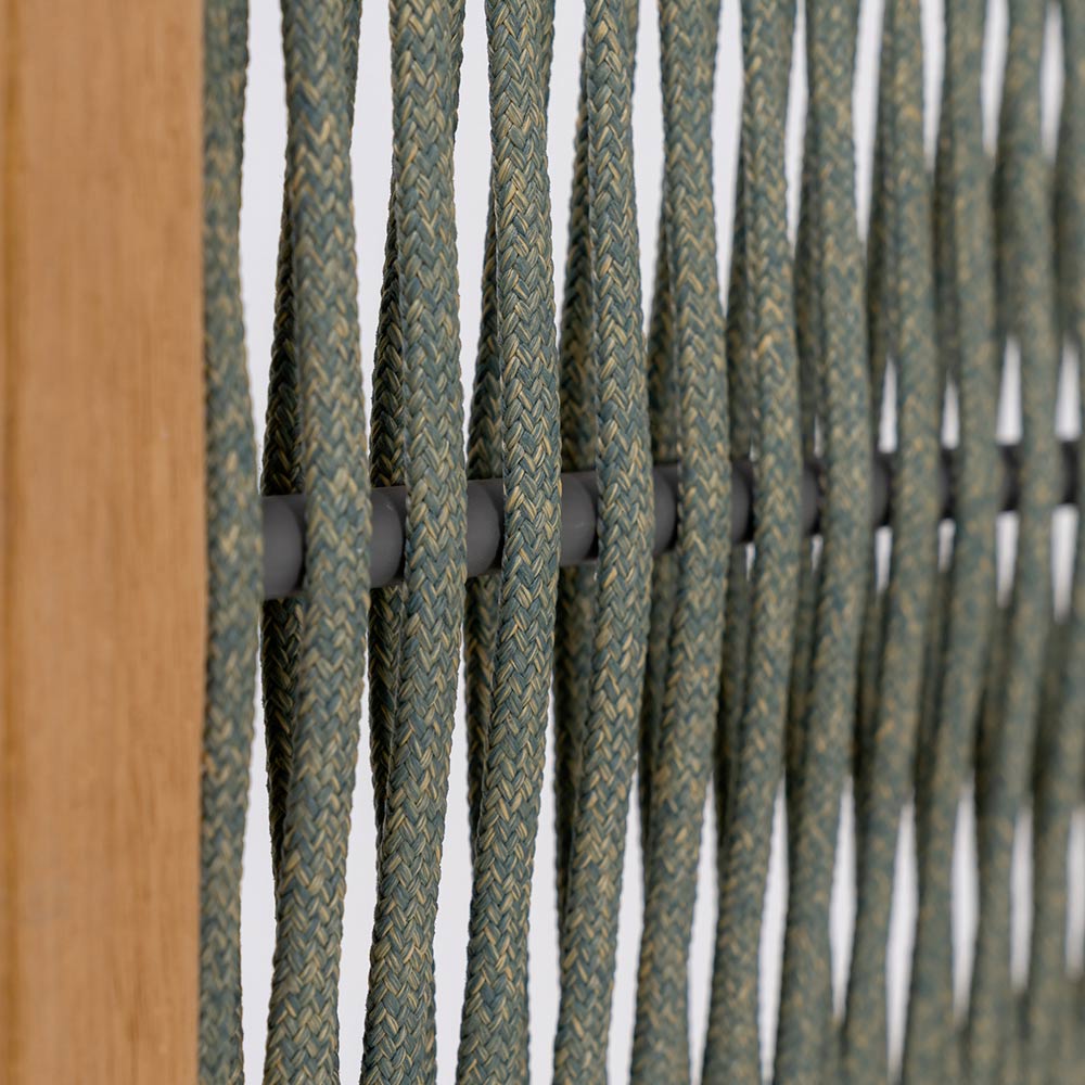 This garden divider represents an elegant design solution to define outdoor spaces , offering a combination of privacy and style. The teak and aluminum structure merges with woven rope panels, combining the warmth of the organic material with the functionality of a mobile partition.