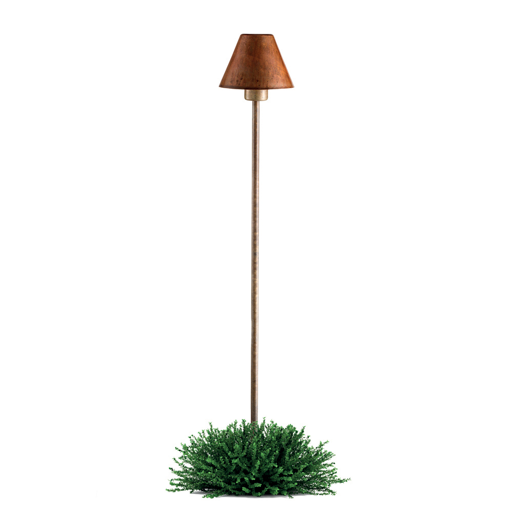 Outdoor floor lamp made with antique brass frame and headin antique copper and cut-off light entirely Made in Italy.
