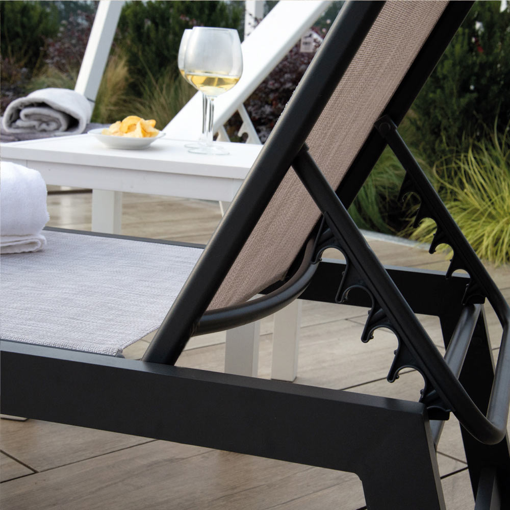 The Textilene fabric is not only durable and easy to clean, but also offers exceptional comfort, allowing you to enjoy hours of relaxation without compromise. The adjustable backrest allows you to find the perfect angle for every moment of relaxation, from a quiet read to an afternoon nap.