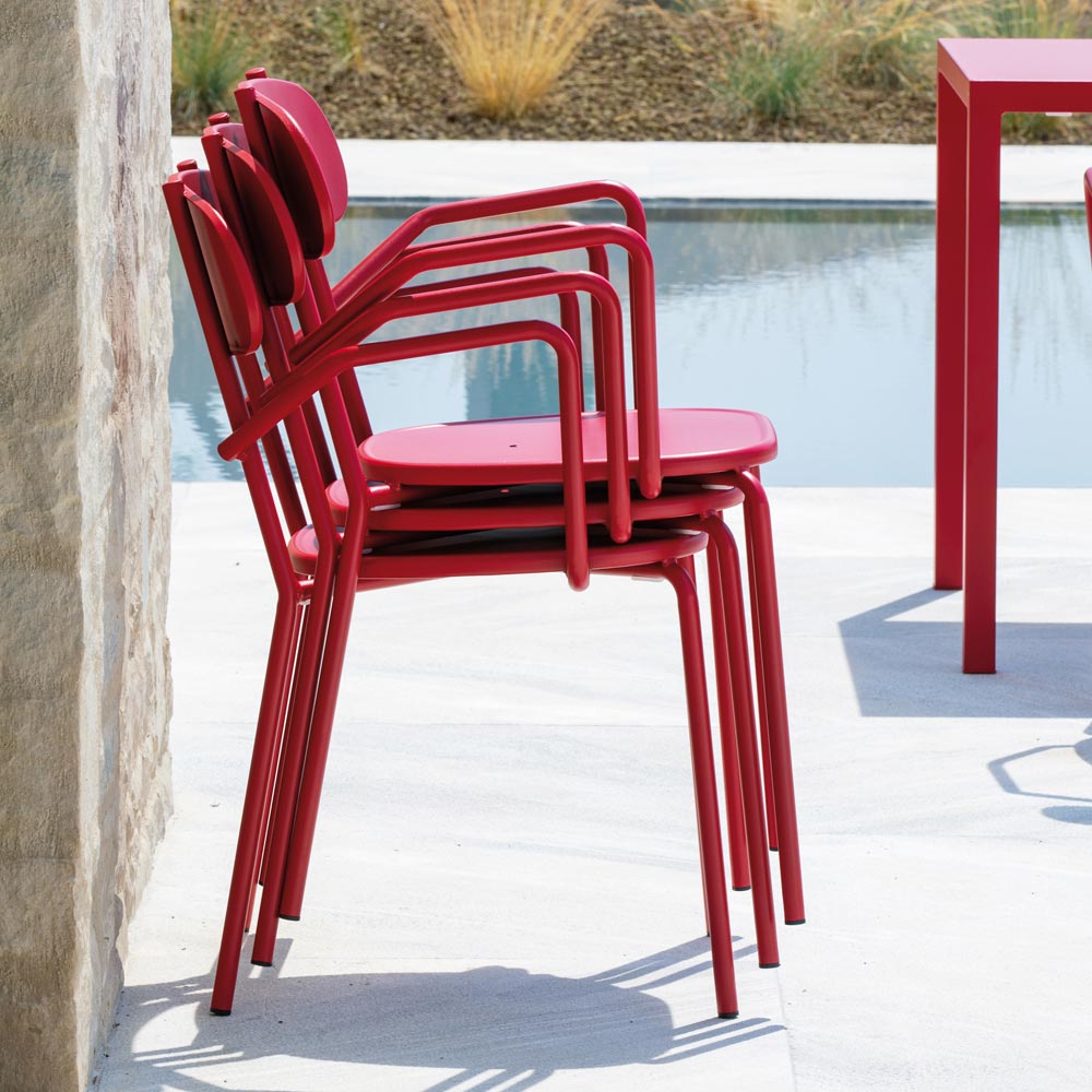 Stackable outdoor chair in powder coated galvanized iron with armrests Made in Italy 4 pieces.