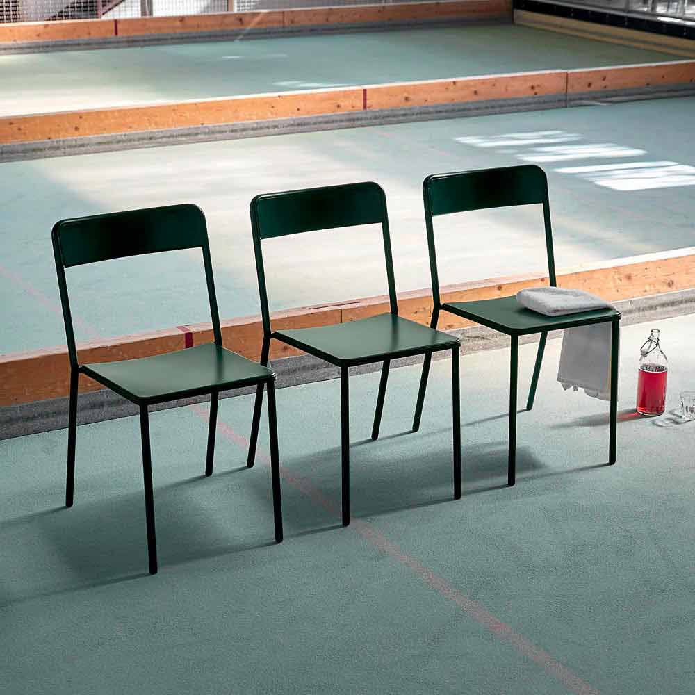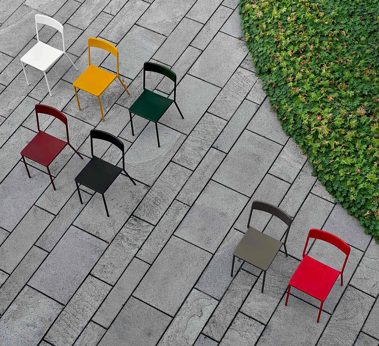 Xylia is an outdoor chair with a minimal and versatile style entirely made of painted metal available in 7 color variations which allow Xylia to give personality and class to any environment. Its essential lines make it an extremely practical and handy chair. Xylia is also stackable up to a maximum of 6 units allowing you to optimize spaces at best.