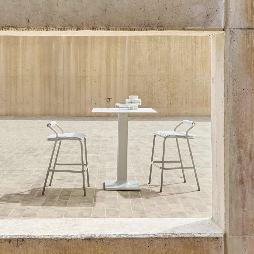 Outdoor stool in painted aluminum complete with Made in Italy cushions.