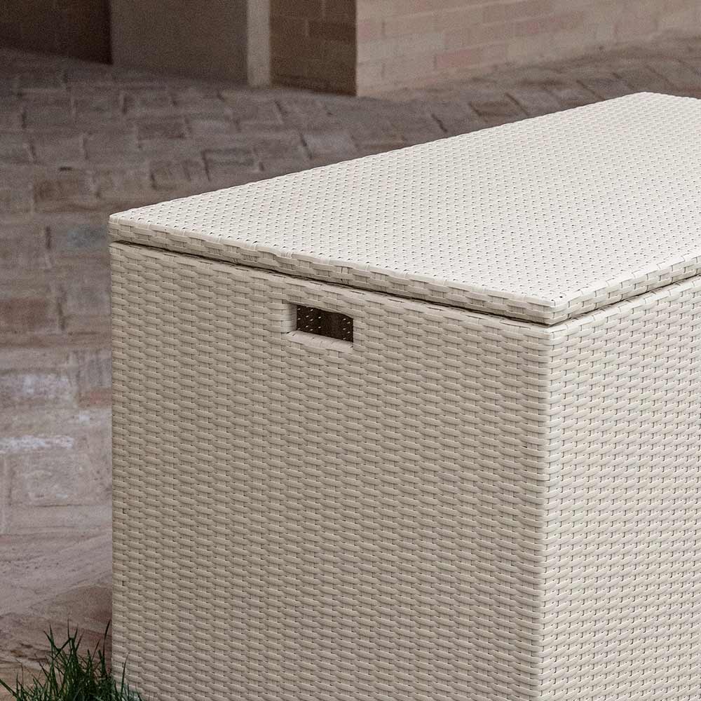 Garden storage trunk made of hand-woven Polyrattan .