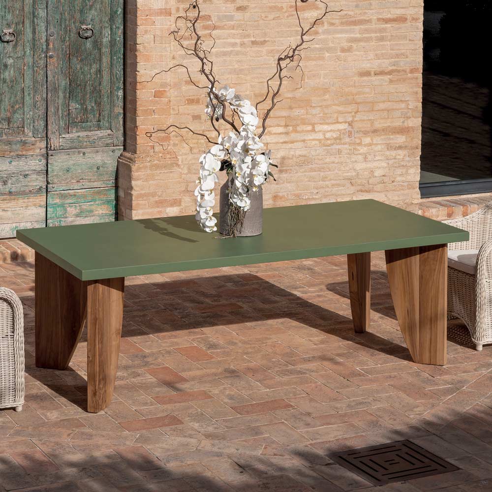 Indoor and outdoor table in okumé marine plywood and teak Made in Italy