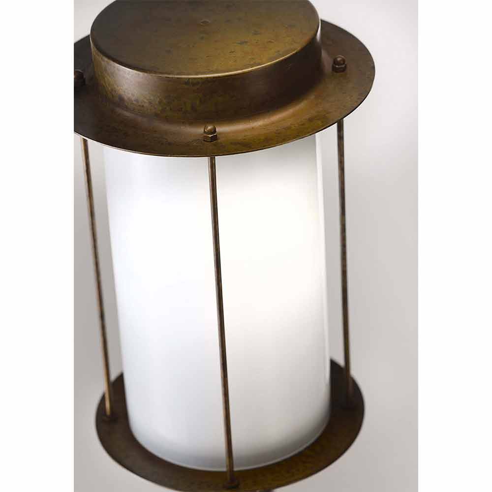 This outdoor wall light has a cylindrical shape that represents the modern reinterpretation of the classic wall candle holders, to create suggestive and welcoming atmospheres. Made of white glass and antique brass, its design is ideal for lovers of industrial vintage. It is indeed a piece of furniture with a great emblematic value, ideal for adapting to modern but also more traditional contexts.