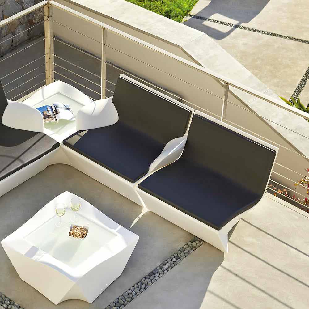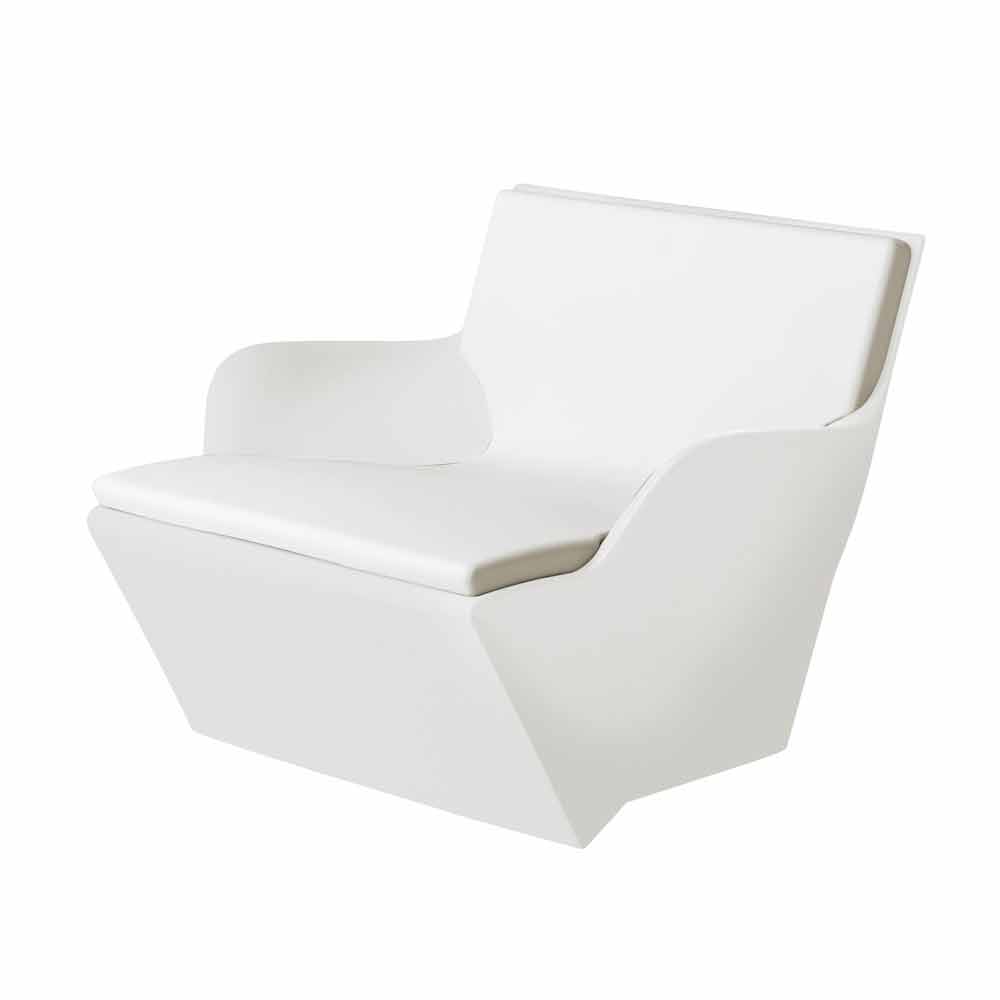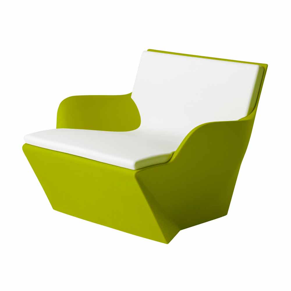 Made of polyethylene, this armchair is available in the standard version in thirteen different colours. It adapts to both indoor and outdoor furnishings and can be accessorised with cushions made of polyurethane and available in three different colours: - Anthracite; - Light grey; - White. Kami San can be combined with the Kami Ichi lounge chair and the Kami Yon sofa with armrests. Also available in the luminous or lacquered version.