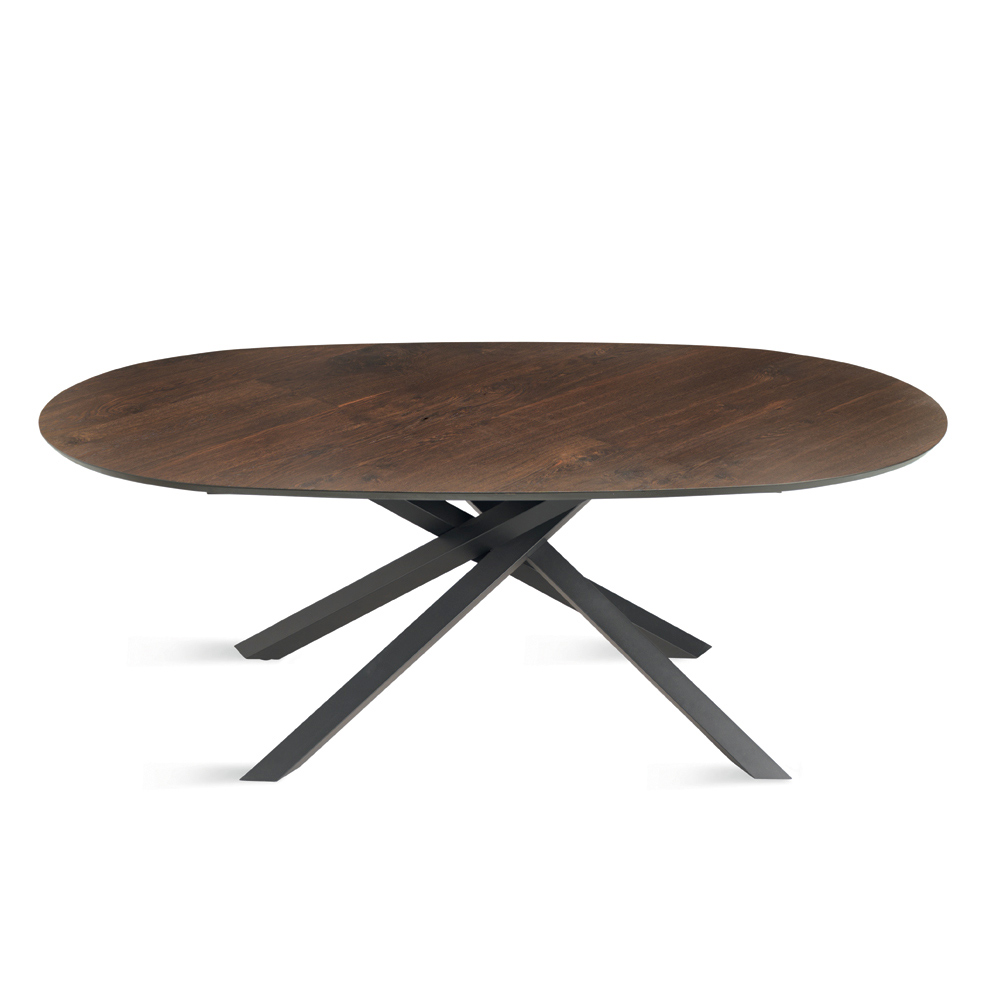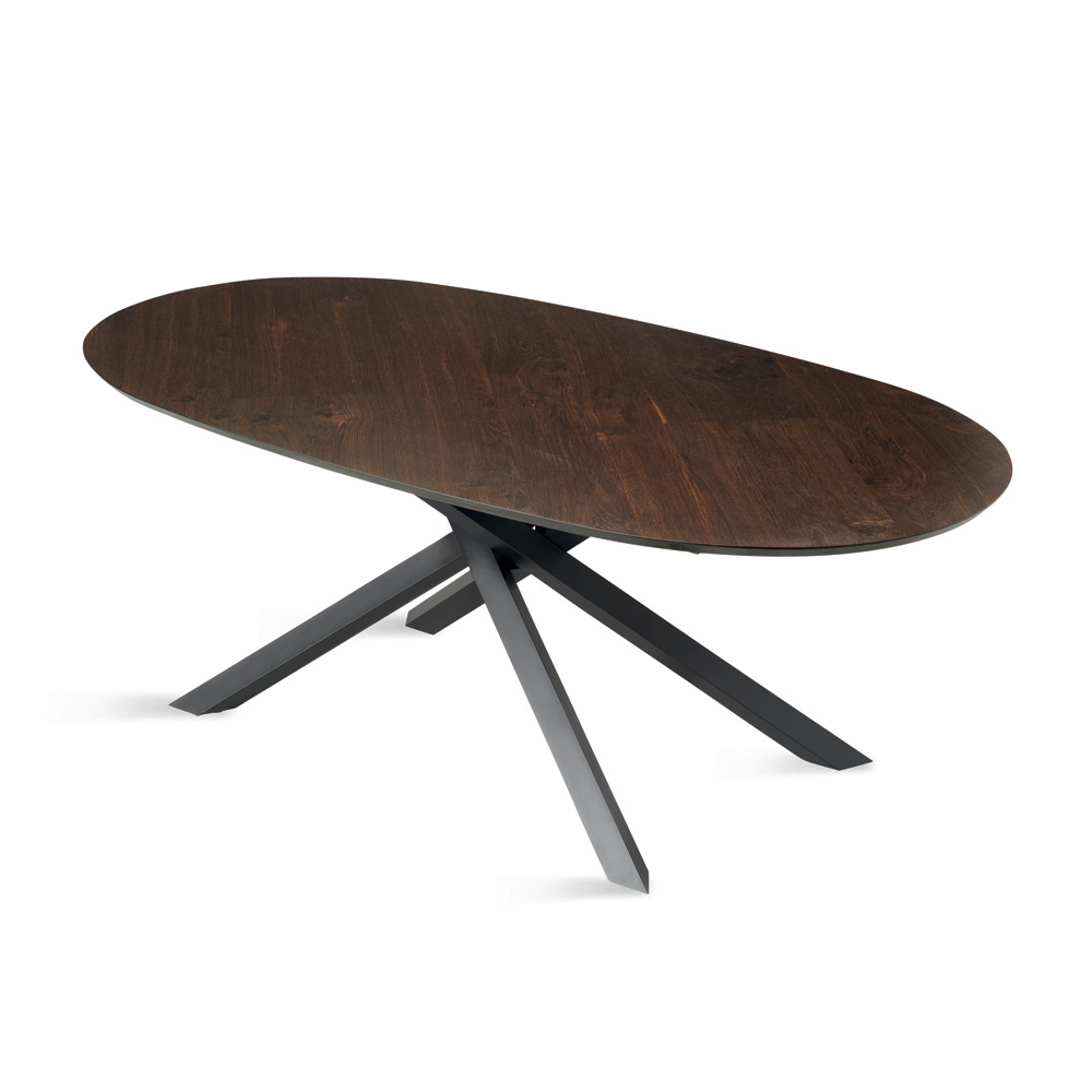 An elegant, Made in Italy designer dining table designed to stylishly furnish your dining room or living area . The table stands out for its refined oval oak veneer top , featuring a soft profile that encourages conviviality and brings a natural elegance to the space.