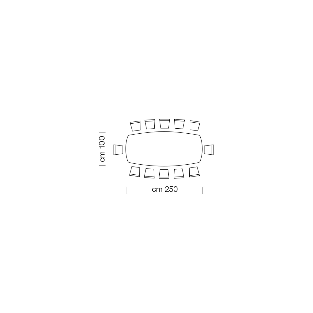 Measures- L 250 x D 100 x H 73.5 cm (12 seats);