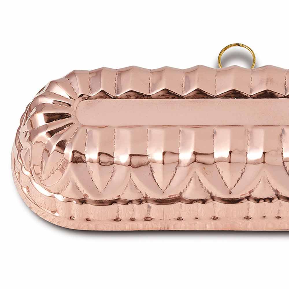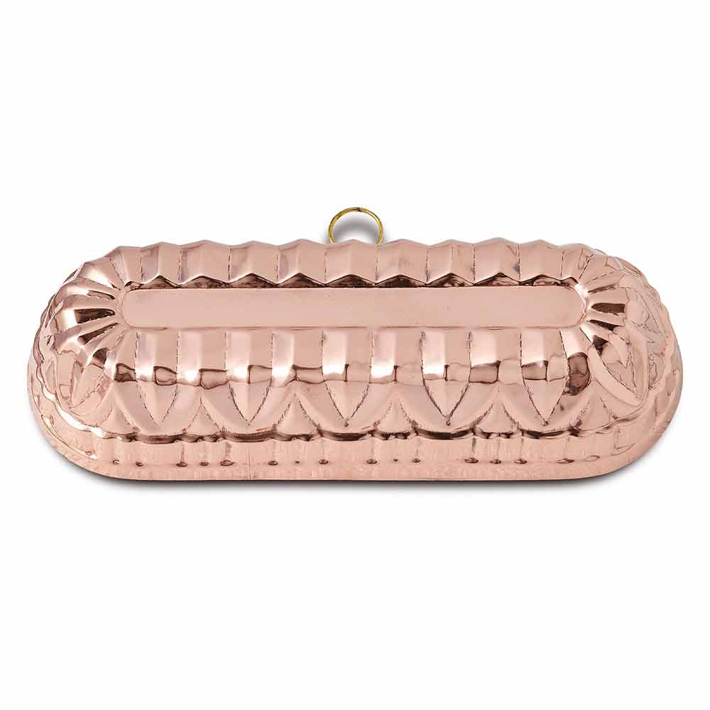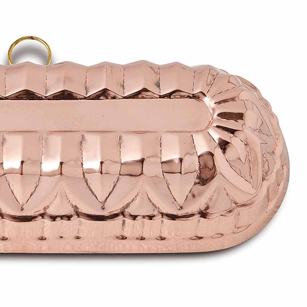 Oval baking pan for plumcake in hand-tinned copper and brass ring, made in Italy.