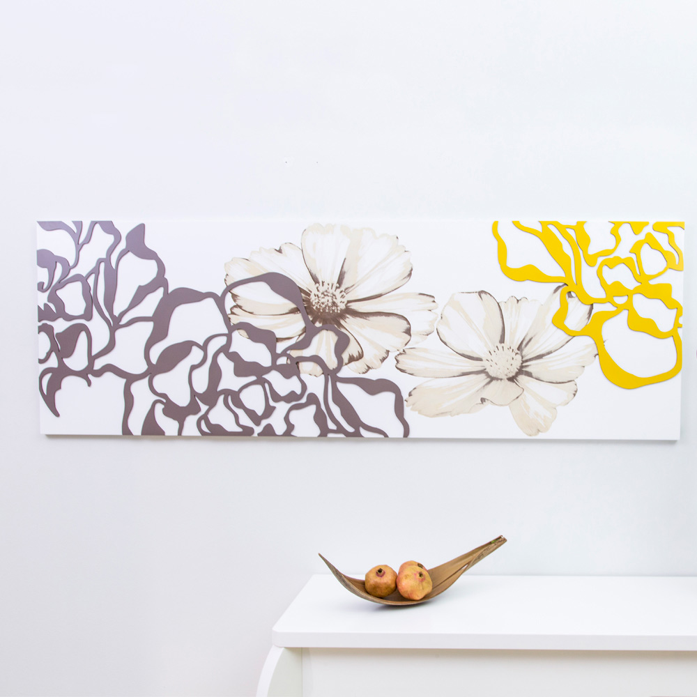 Decorative panel depicting flowers and peonies with their own nuances and abstract details of different colours .