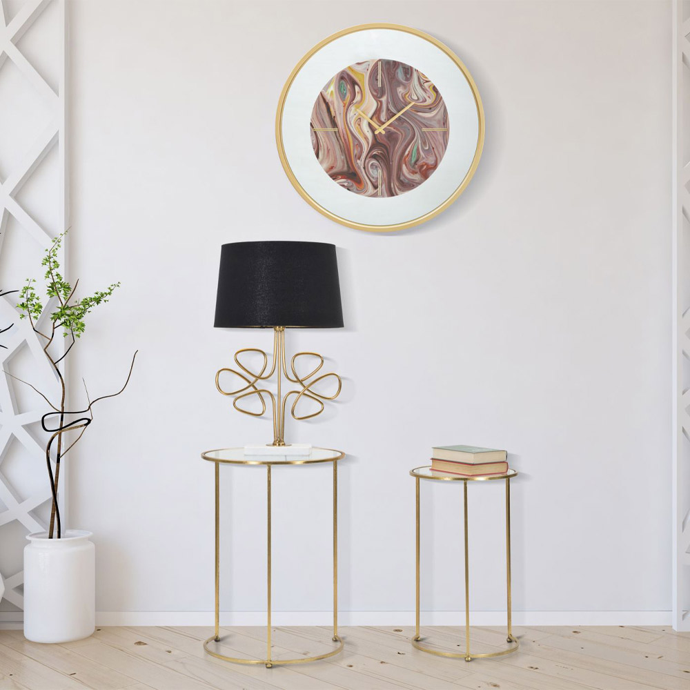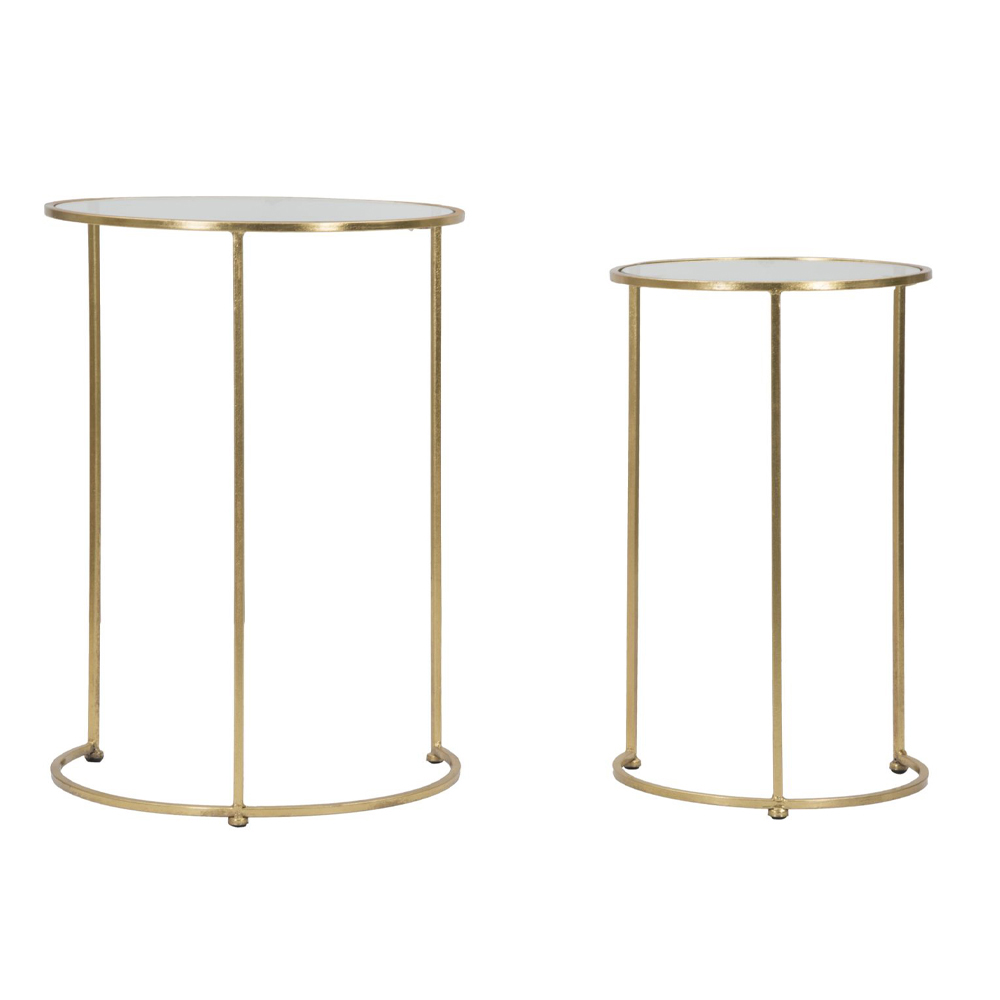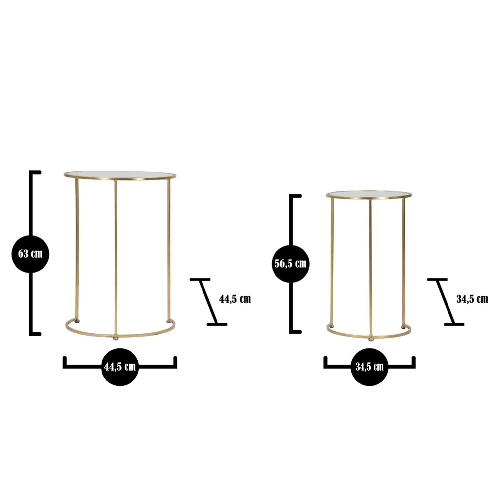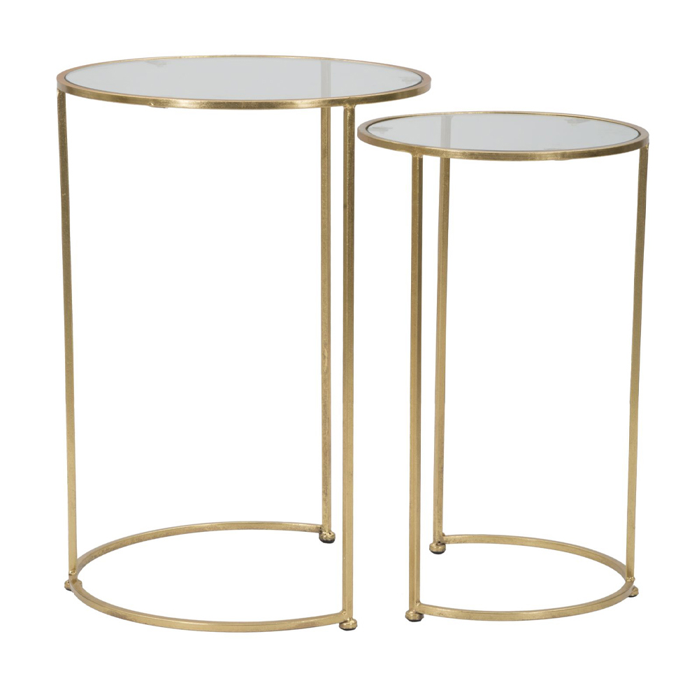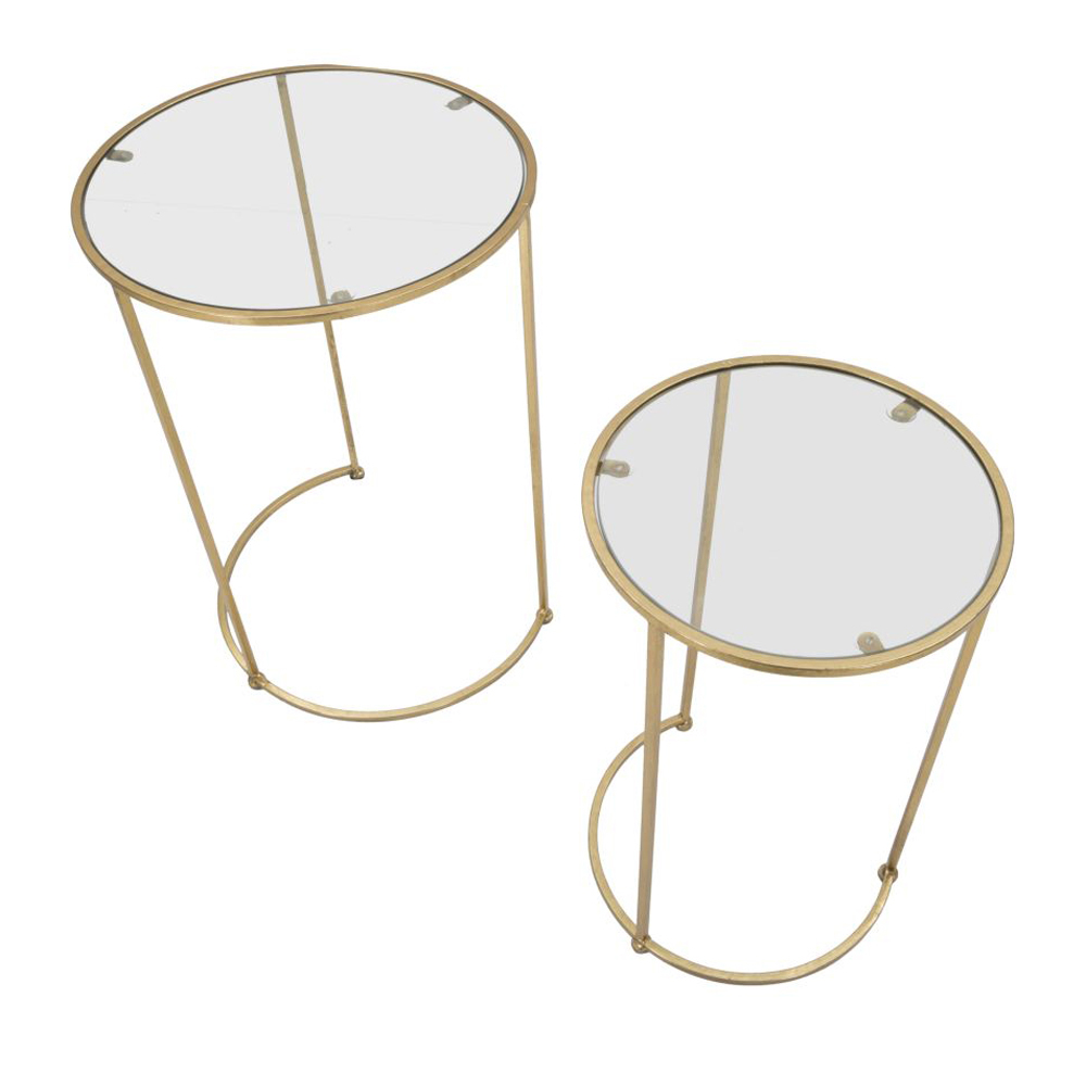 Round coffee tables with golden finish iron structure and transparent glass top . Two complements with a simple and versatile designdesigned to complete elegant style living rooms with character and personality for an exclusive and refined result . The essentiality of the shapes represents their real strength, characterizing the entire aesthetic and increasing its value together with the refined glass top which underlines its sophisticated look .
