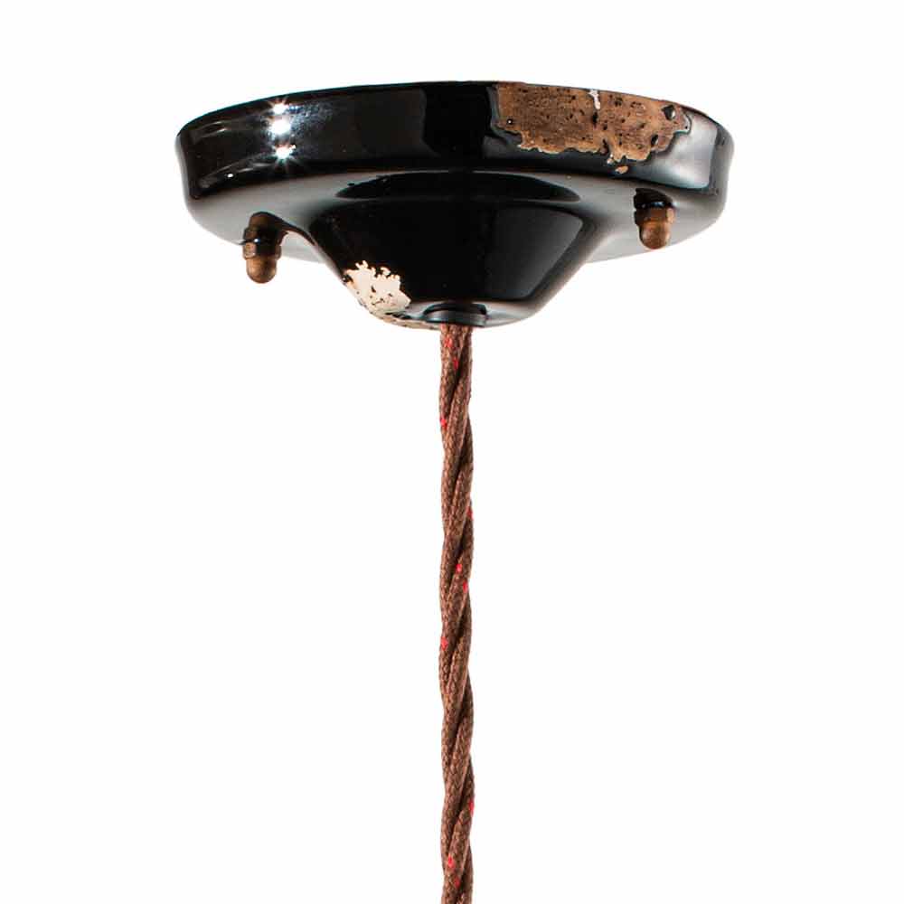 Suspension lamp in corten iron and Lois Ferroluce ceramic Lois is a fantastic bell-shaped suspension lamp, with a unique and original design, handmade by skilled artisans in Italy. This beautiful lamp consists of a large diffuser made of antiqued metal, specifically in iron in the corten - rust finish. The iron, through a special artisan process, is treated in such a way as to naturally oxidize. Another peculiarity of this suspension is contained in the details made of ceramic: the canopy, the decorative sphere and the plate, all made of ceramic, available in different chromatic variations. Characteristic of uniqueness is contained in the processing and finishing of the ceramic parts, decorated in such a way as if time had marked its path. The reproduction of the erosion of time combined with the shiny surfaces give that extra value to this suspension. The neglected effect of the surfaces is a deliberate detail. A design that is opposed to luxury but which coexists harmoniously with it. It is precisely this material that gives Lois this role of recalling the past. Lois is inspired by the American rustic style. It is a lamp with dim colors and a lived-in flavor, it is simple and timeless! Lois creates pure, unscreened light. It is these simple and delicate shapes that attract attention, and that make Lois able to adapt to any decor from the simplest and most minimal to the most classic, creating a delicate contrast Bring a touch of design to your home too! Lamp available with ceramic parts in different finishes. Check the color chart and enter the code of the finish you want in the appropriate box!