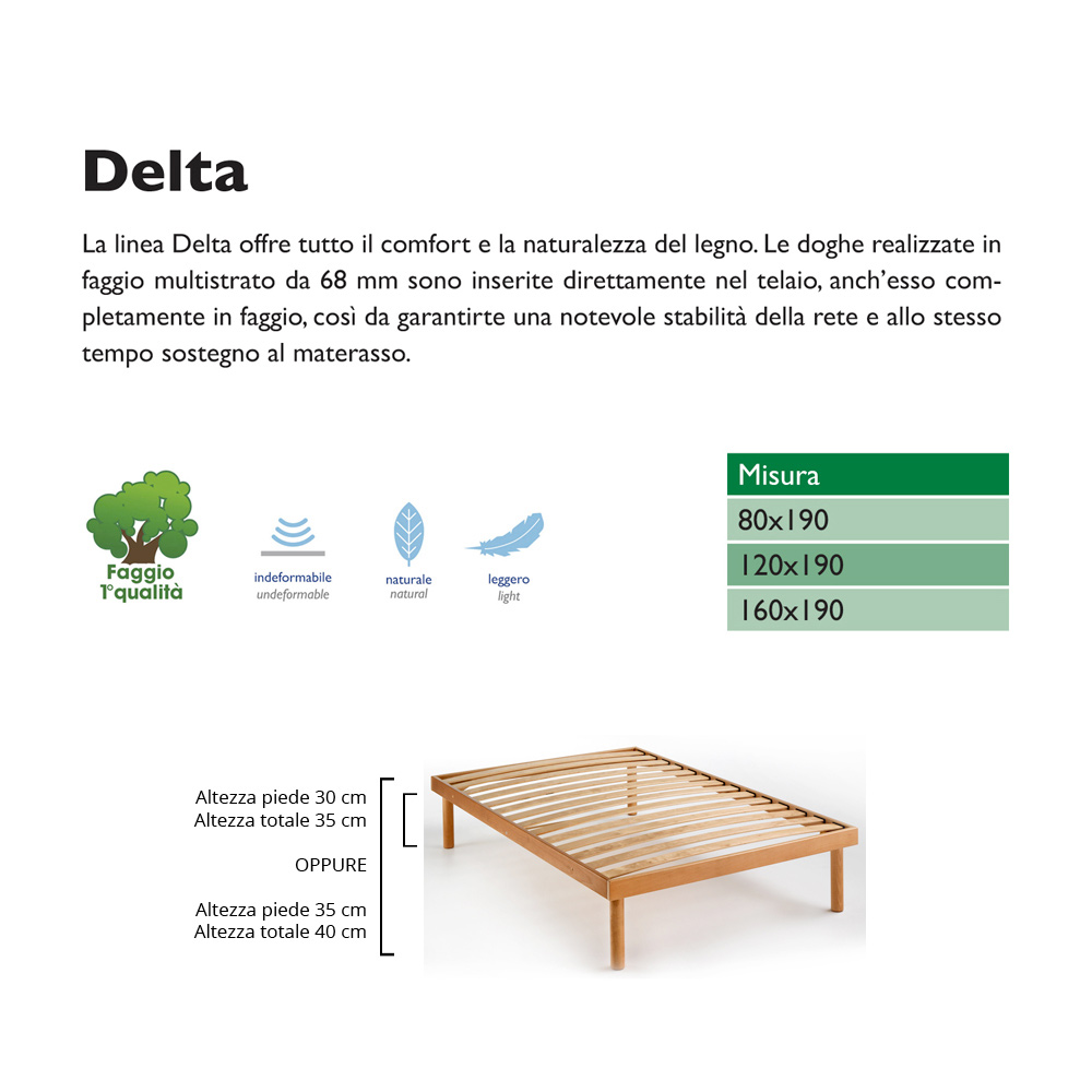 The slats made of 68 mm multilayer beech are inserted directly into the frame, which is also completely made of beech, so as to guarantee considerable stability of the base and at the same time support the mattress.