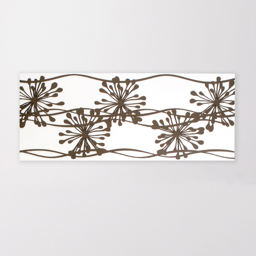 Abstract panel for elegant decoration, made on white lacquered wood with dove gray lacquered decorations of anemones .