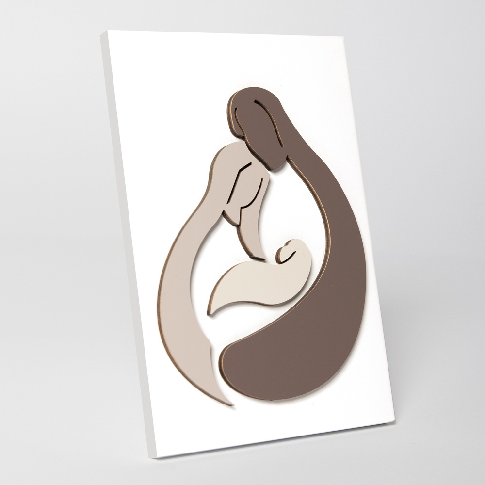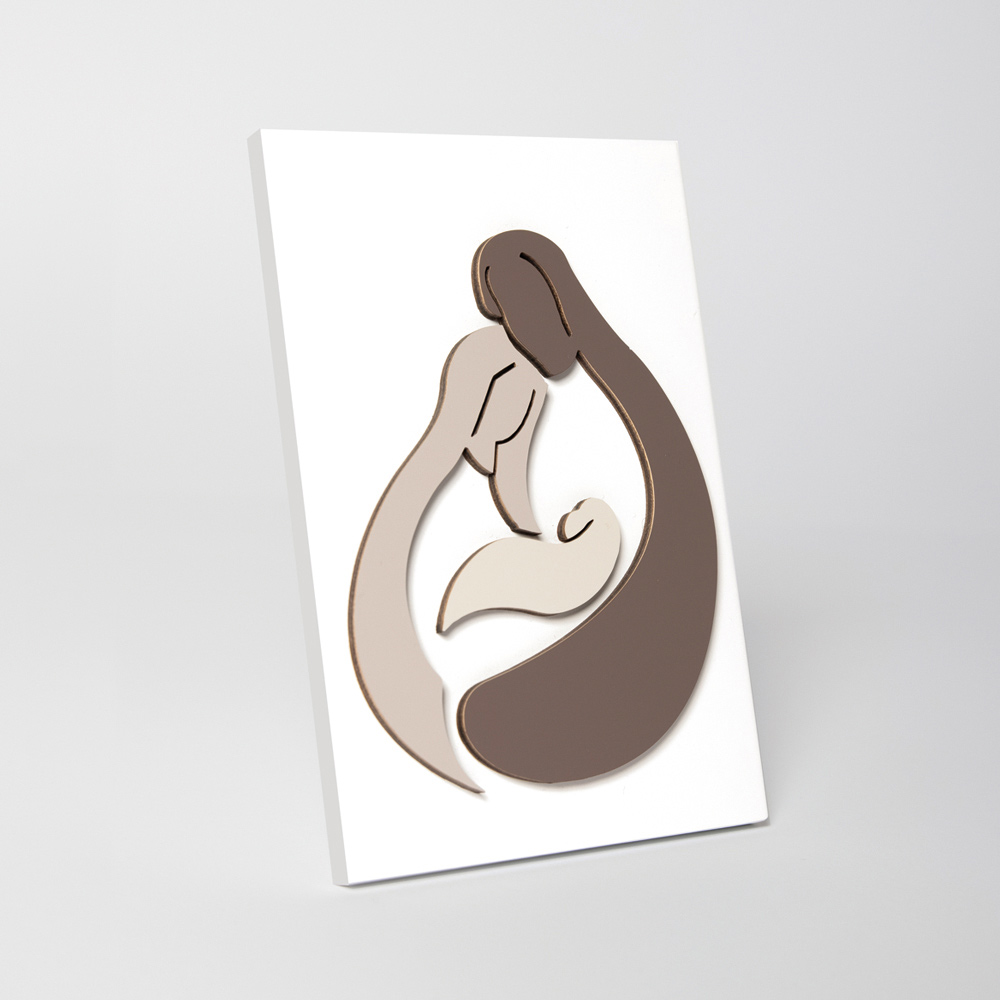 This painting is the result of Italian craftsmanship, the figures are drawn by hand and then painted with the light of the laser beam, without any waste and respecting the environment. For this element, a minimal and essential style was specifically chosen to enhance and represent only the advent of Jesus. The union of finishes and colors creates a unique product of its kind that reveals the love and affection of the family.