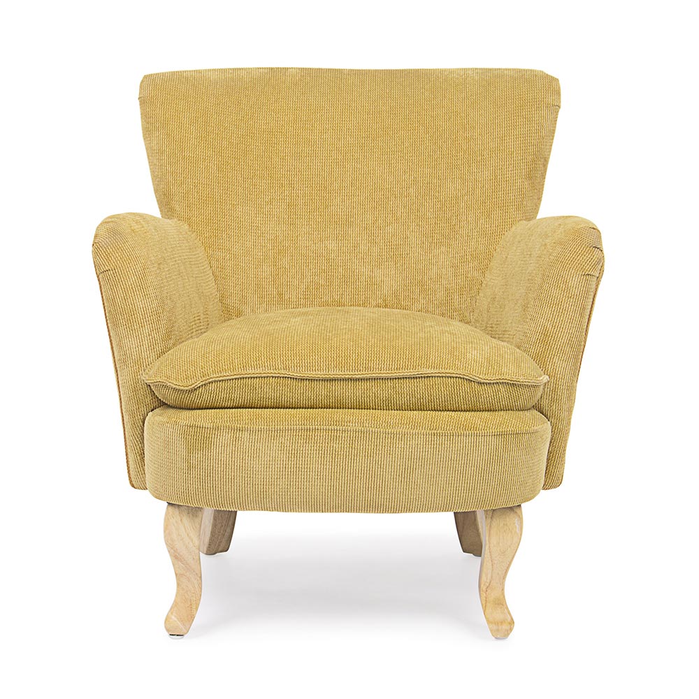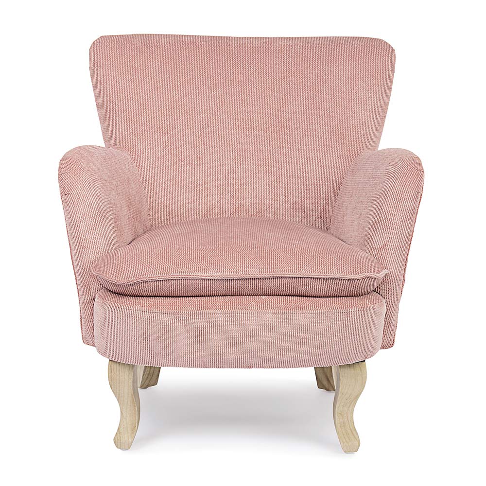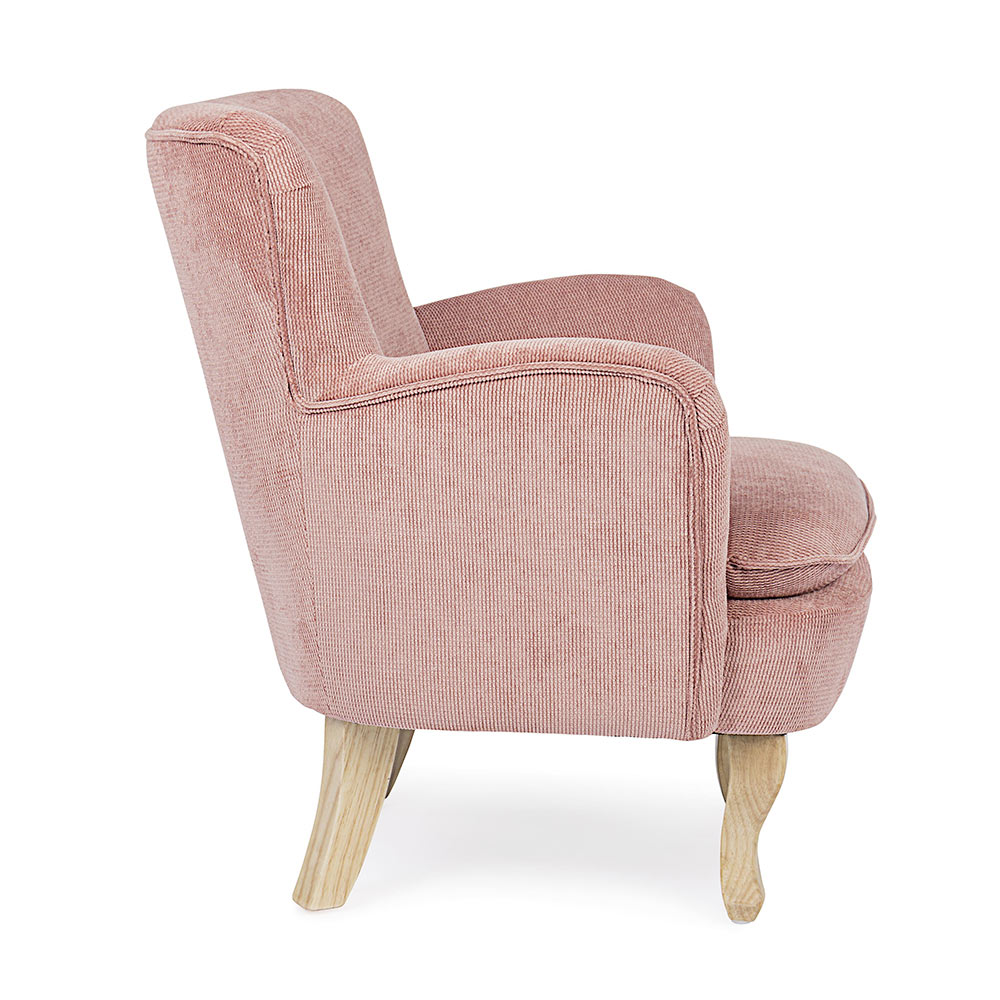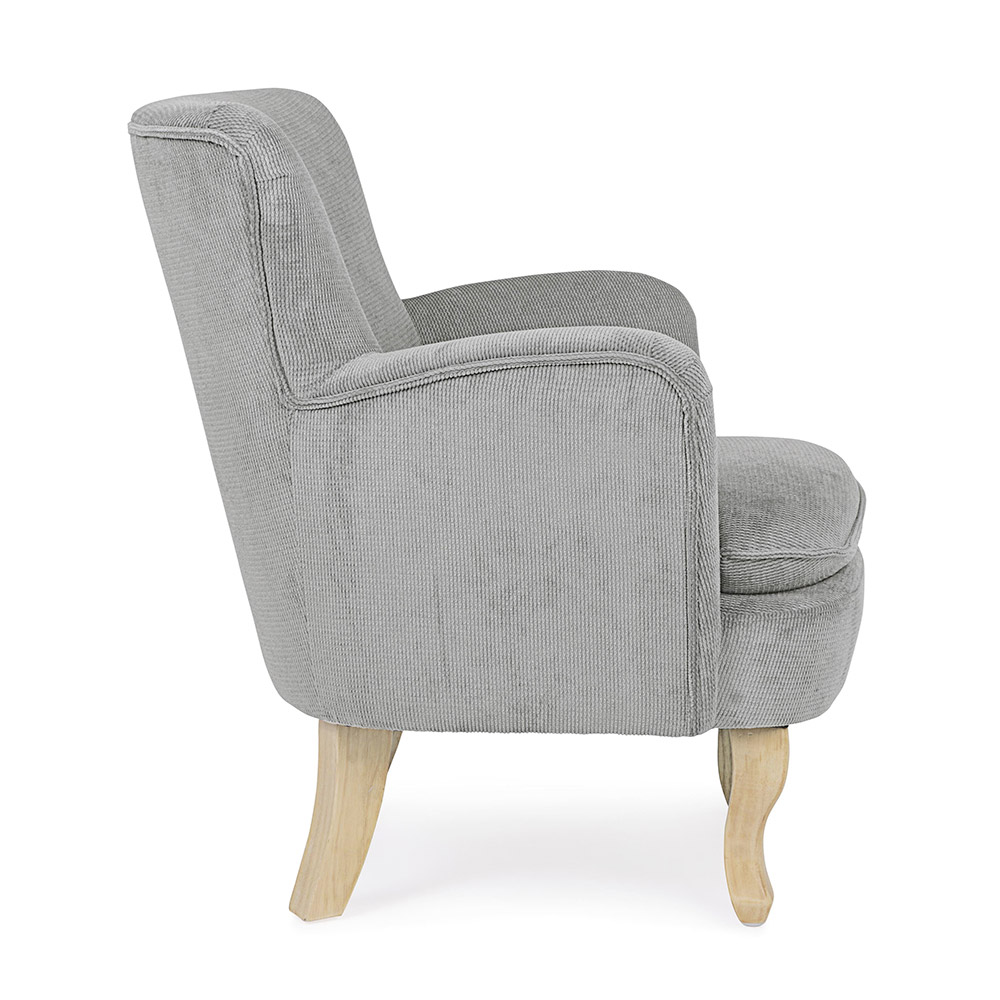 Armchair in pine wood and rubberwood and upholstered seat with a corduroy effect in 4 finishes.
