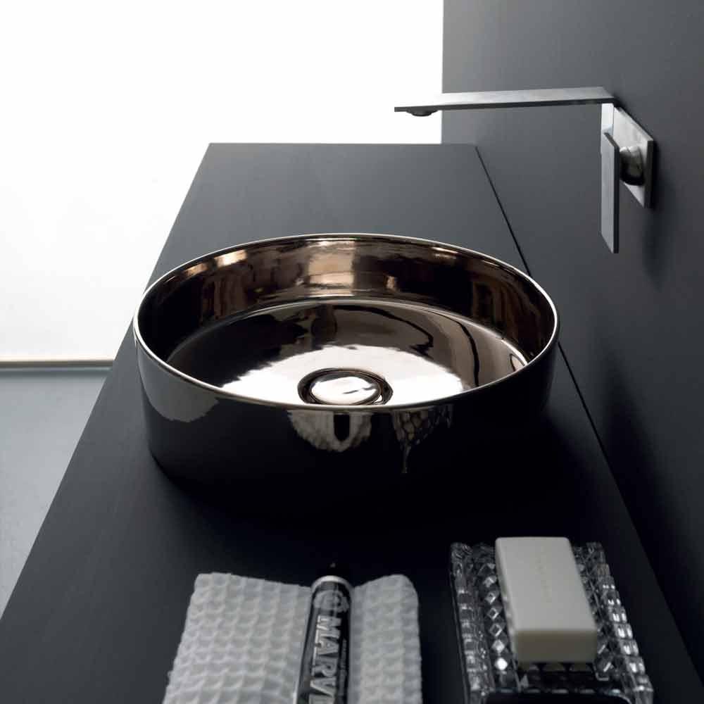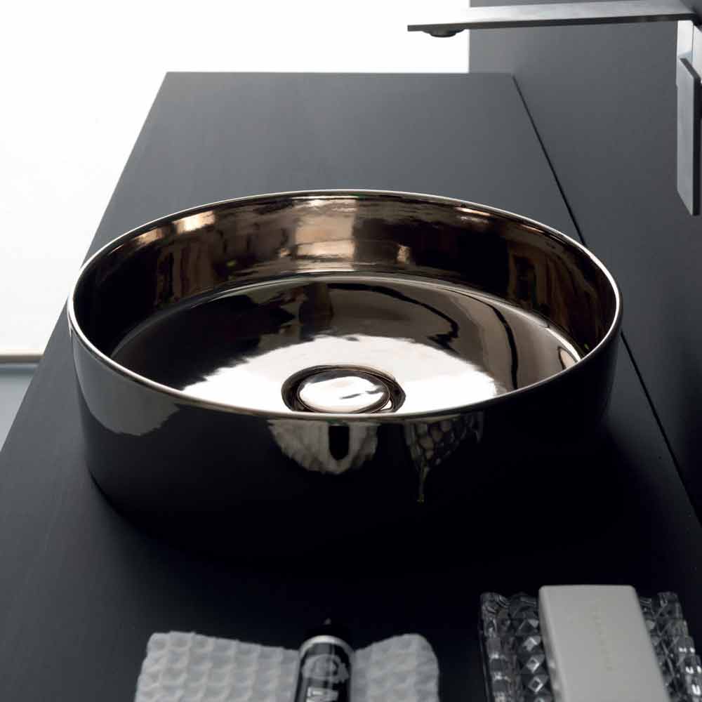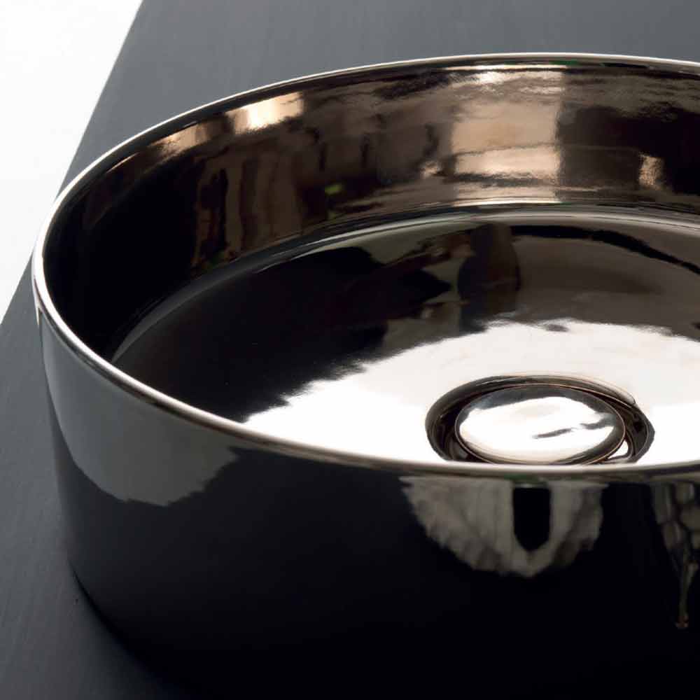 Round countertop washbasin in colored ceramic made in Italy